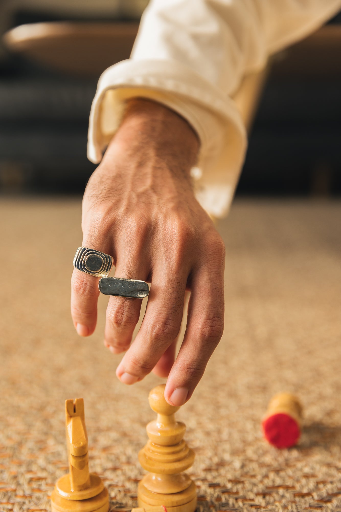 El Anillo Borgov está inspirado en el tablero de ajedrez y en la forma escalonada de la base de las piezas del juego.