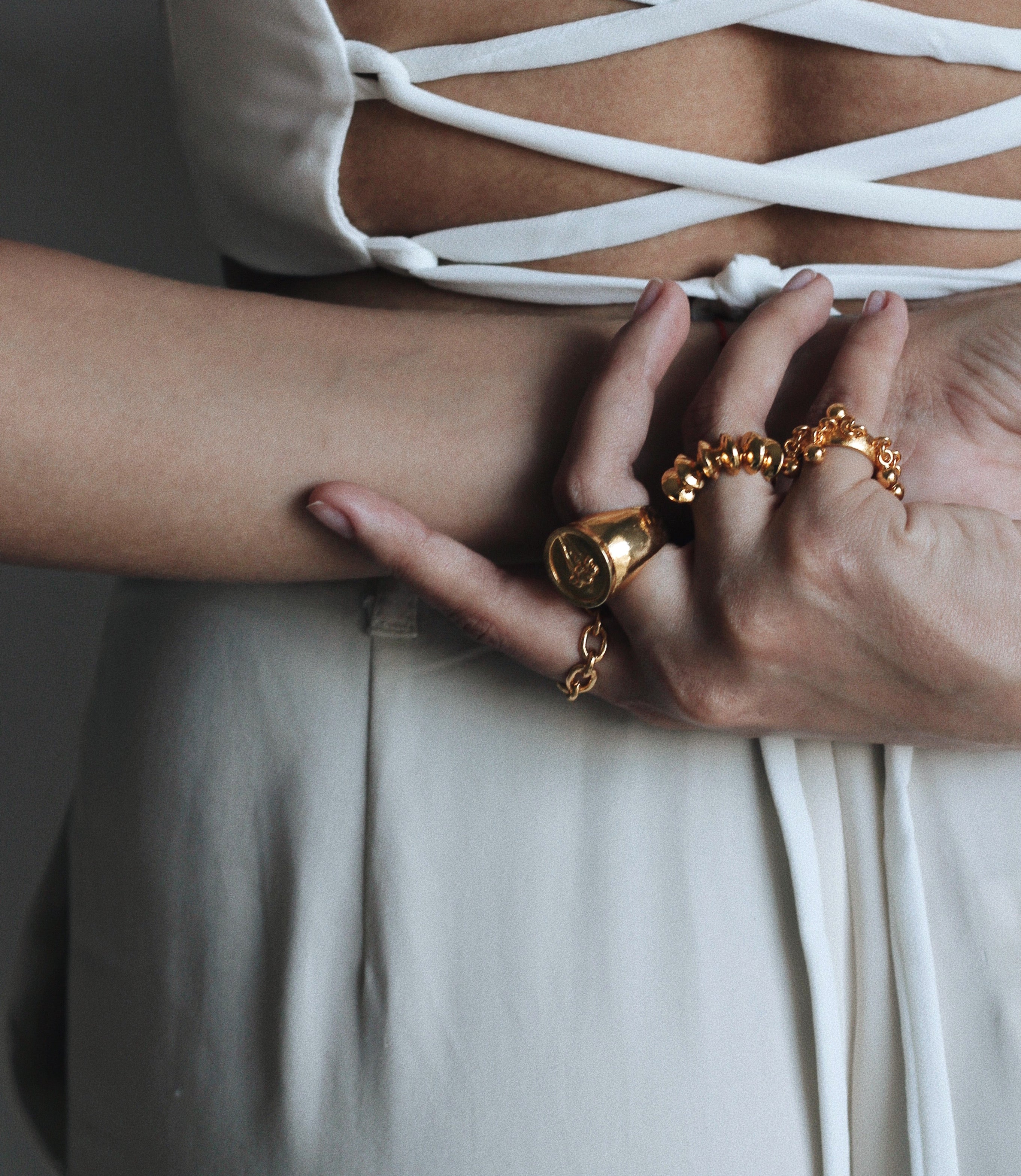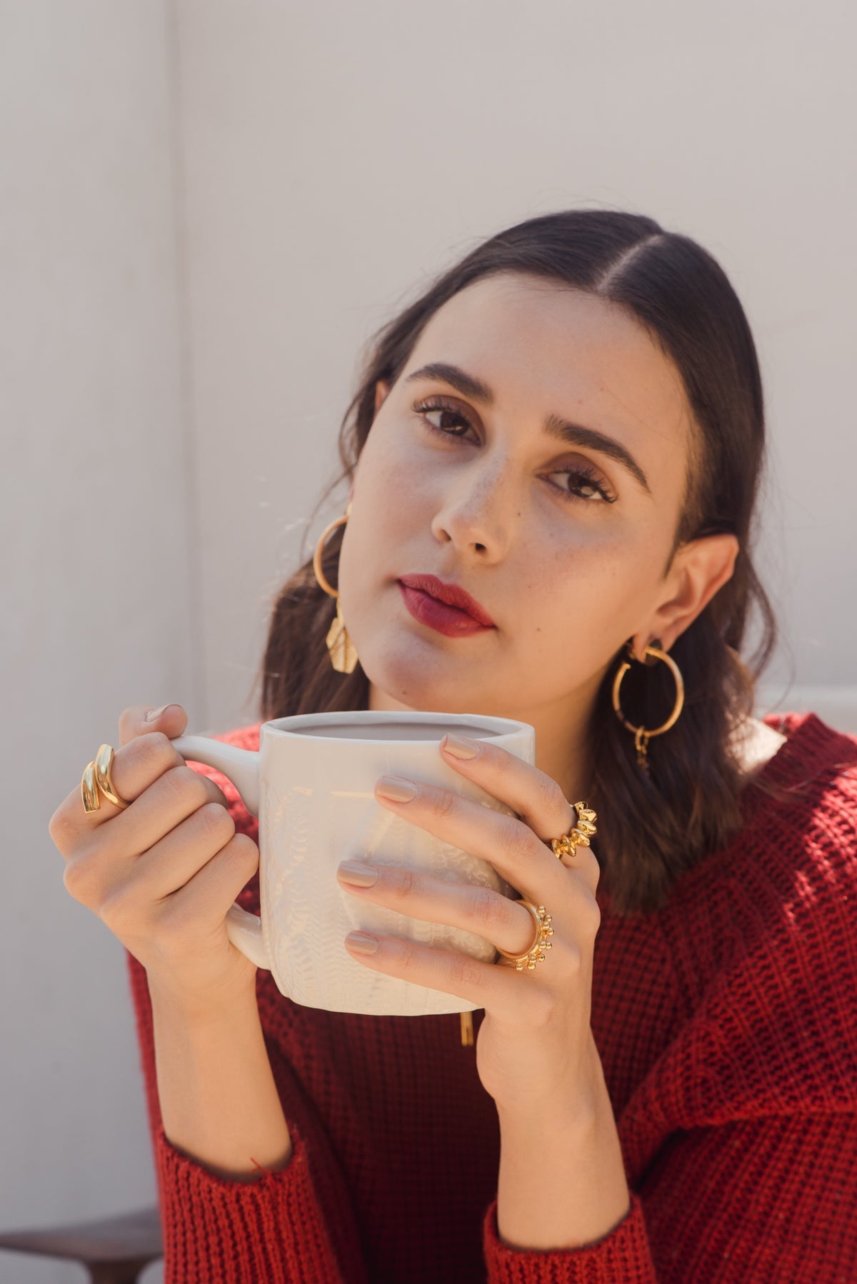 El anillo Glass es una mezcla entre una pieza clásica y contemporánea; los relieves de la parte superior la convierten en una pieza con un toque vanguardista que llama la atención. Es uno de nuestros best Sellers, y hace un dúo perfecto con las candongas compañeras, sin duda, son las piezas perfectas para destacarte y verte delicada y elegante.