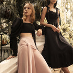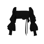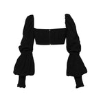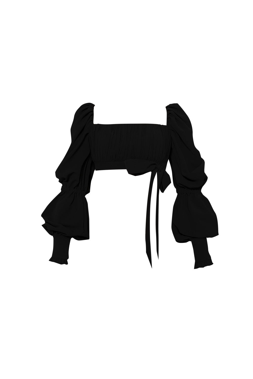 Corte Top Drapeado a mano en el maniquí con manga doble con globo, puño apretado y waisto inferior con bucle decorativo. Base: TWILL CREPE.COPOSICIÓN: 100% poliéster.