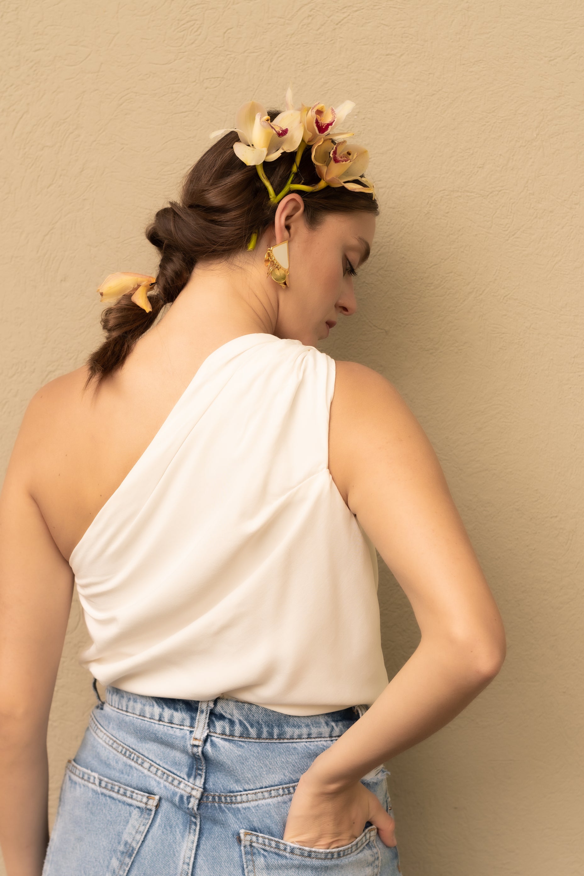 El bodysuit Simone está hecho en 100% viscosa EcoVero; es la mezcla perfecta entre una prenda clásica y contemporánea, es delicada y suave al tacto. Definitivamente las siluetas de un solo hombro son el must have de la temporada.