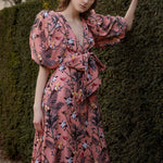 V Vestido de escote, recorte los detalles en la parte delantera, las mangas globales, Midi largo, se pueden atar de tres maneras diferentes, por lo que es un diseño versátil, elegante y moderno.