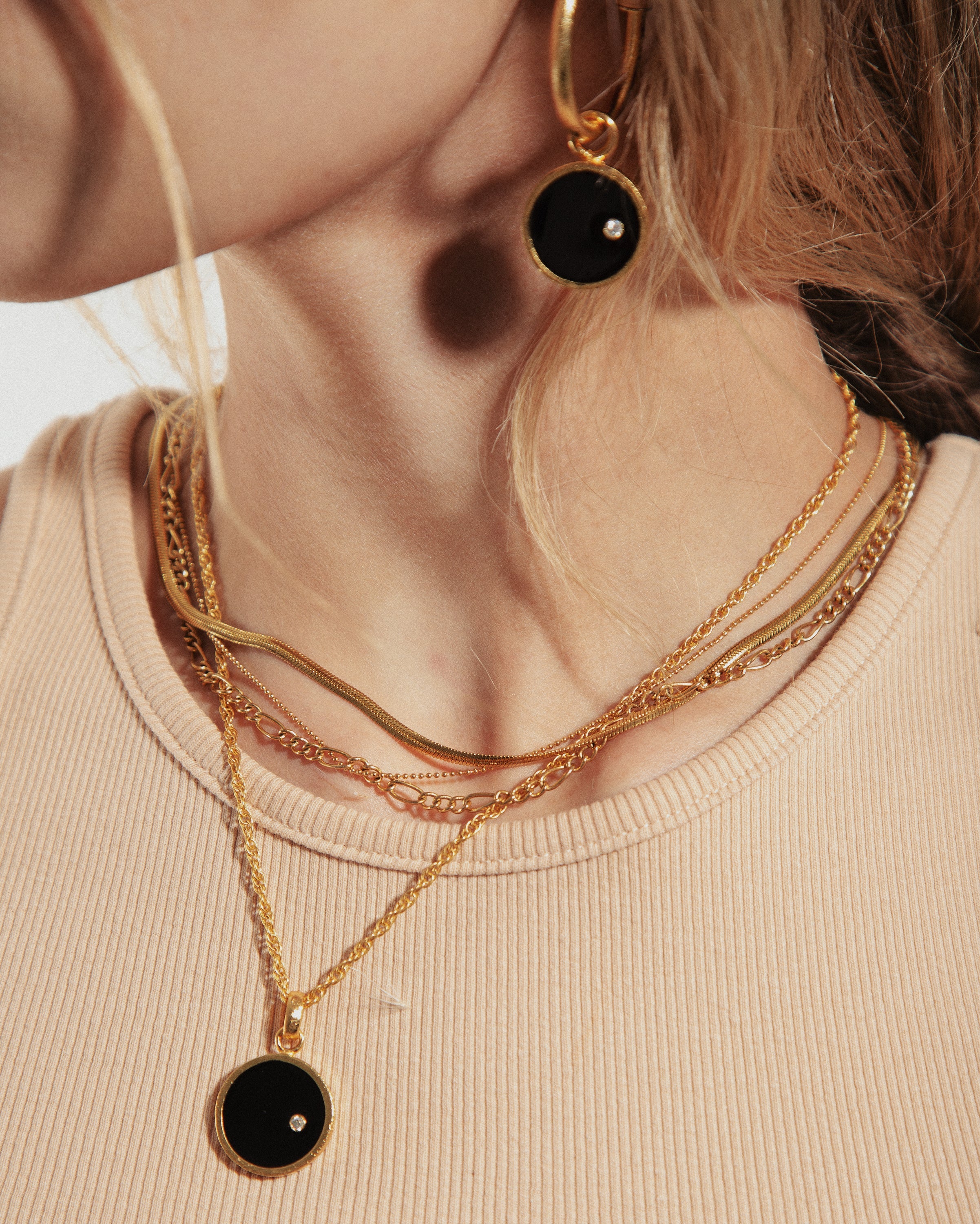 El collar Judd es esa pieza que juega un papel importante a la hora de escoger que collar ponernos, ya que al tener la incrustación del circón y al estar esmaltado nos hace tener ante nosotros una pieza, que si o si, nos va hacer destacarnos y llamar la atención. Puedes usarlas con las candongas Judd compañeras para complementar.