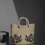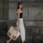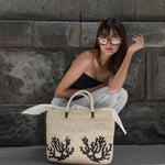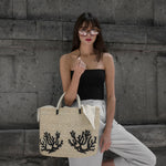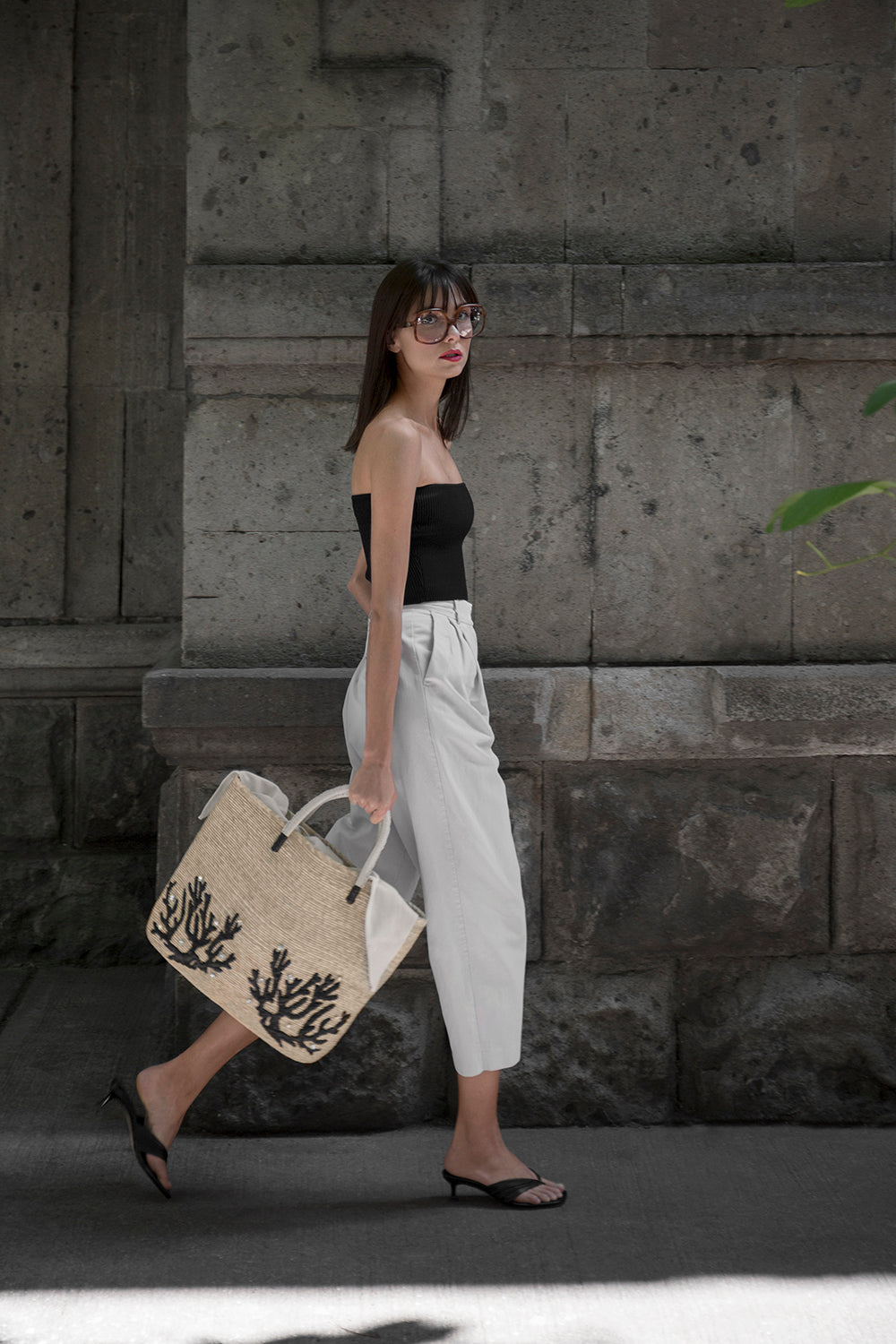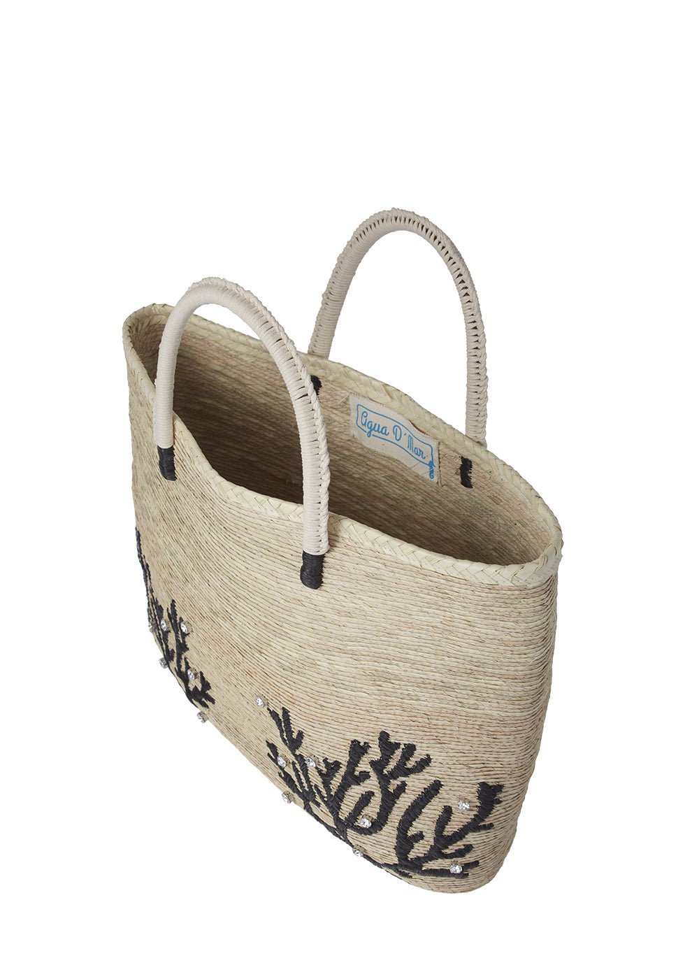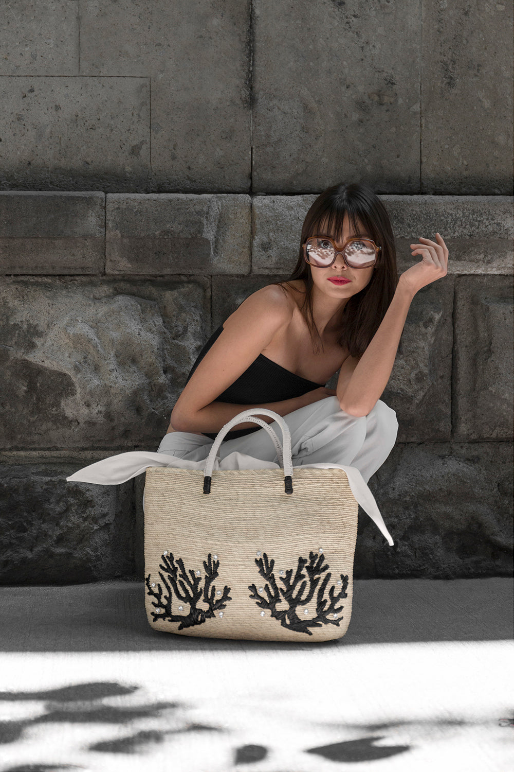 Materiales: Bolso de palma, swarovski, cordón y rafia
