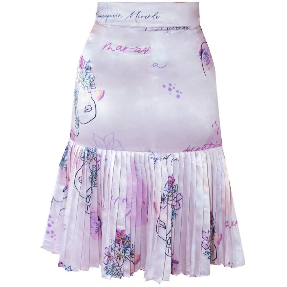 Hoja corta rodada, con vuelo manual, cierre trasero invisible.