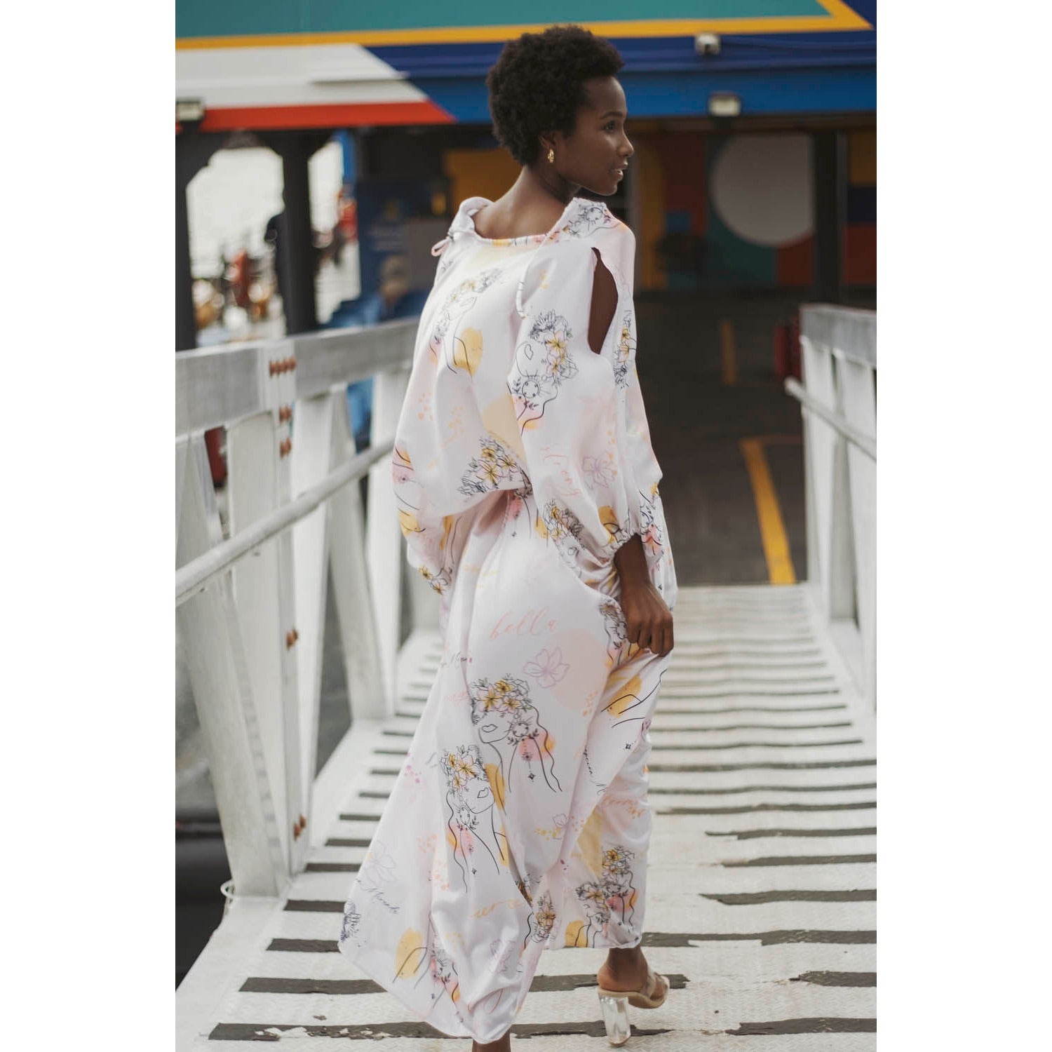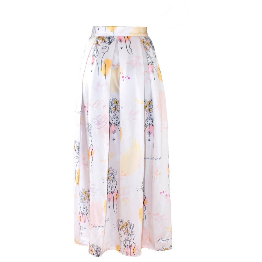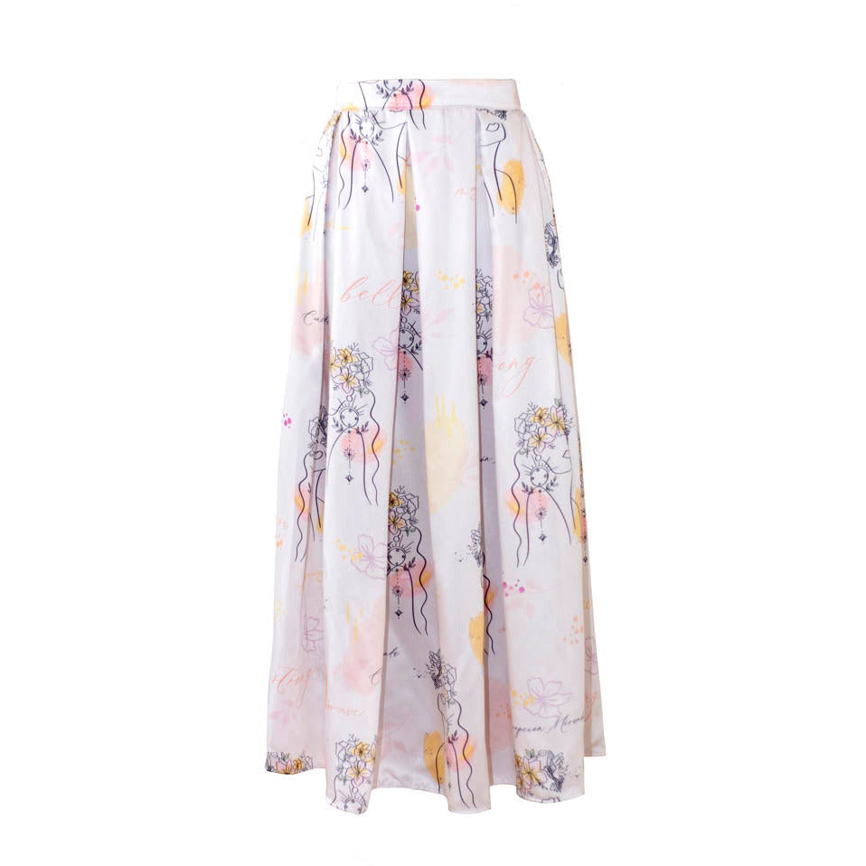 falda maxi con paletones, impresión exclusiva de la marca, representa la belleza y la magia del universo en cada uno de nosotros.