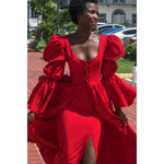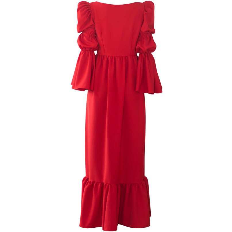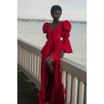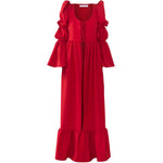 maxi kimono v cuello con el cuello en la cintura con manga de globo doble, mecanismo de amarre en el centro de ajuste en el busto y el volante de la dirección de baja.