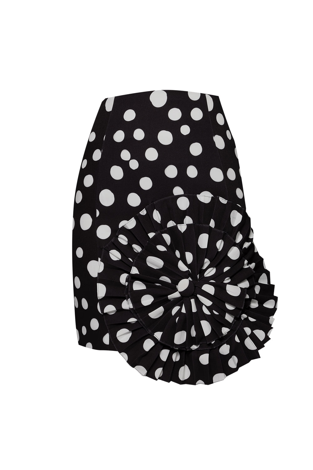 Falda de silueta corta con un detalle delantero en el frente montado a mano en un maniquí y cierre invisible posterior. Base: Hermes.composition: 100% poliéster.