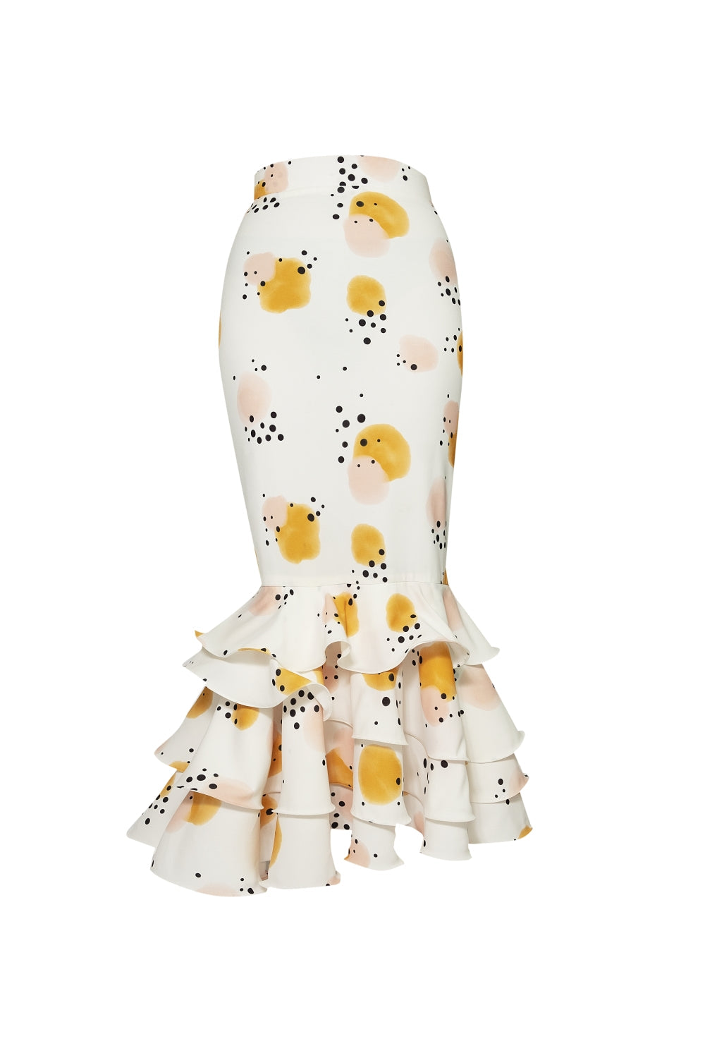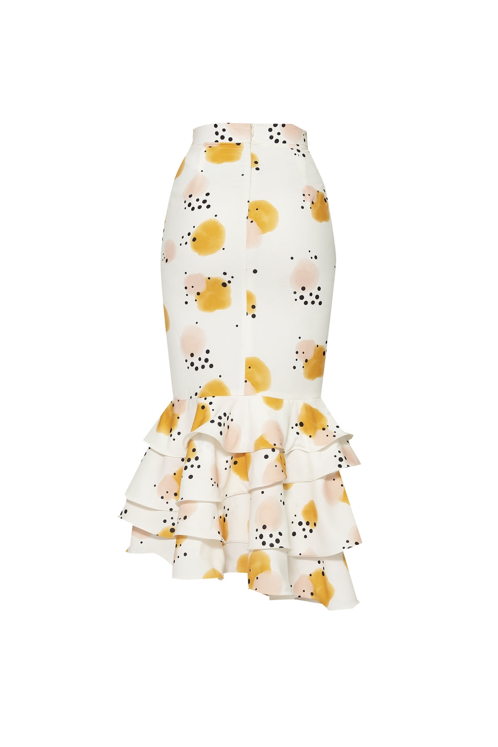 Silhouette Midi Falda lápiz con cintura con cintura, cuatro boleros en la parte inferior y un cierre invisible en el costado.