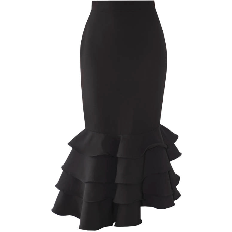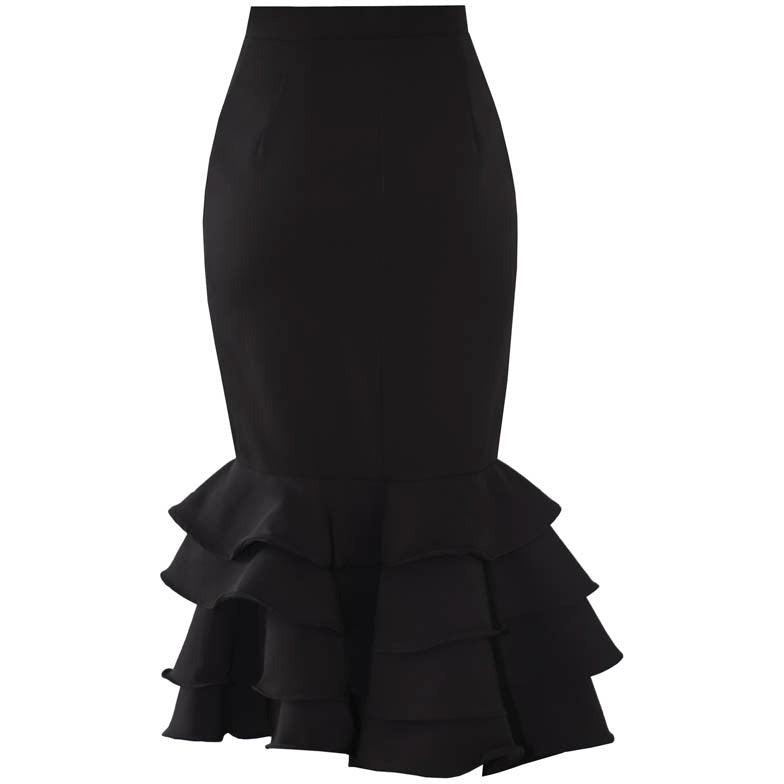Silhouette Midi Falda lápiz con cintura con cintura, cuatro boleros en la parte inferior y cierre invisible en el costado.
