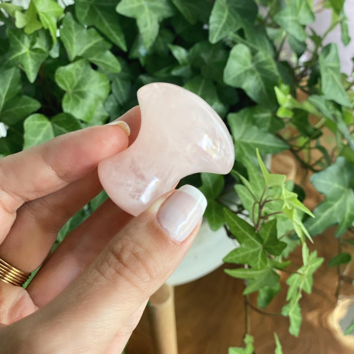 A diferencia del objetivo de nuestra Gua Sha (que nos masajea mientras proporciona un alto masaje linfático), Derma Roller (que a través de acupuntura reactiva las células de nuestra piel), Beauty Bar (que a reanima las células cutáneas), nuestros Mini Hongos de Cuarzo cuentan con un tamaño y forma ideal para proporcionar el más relajante masaje en nuestra piel y los músculos de la cara.
