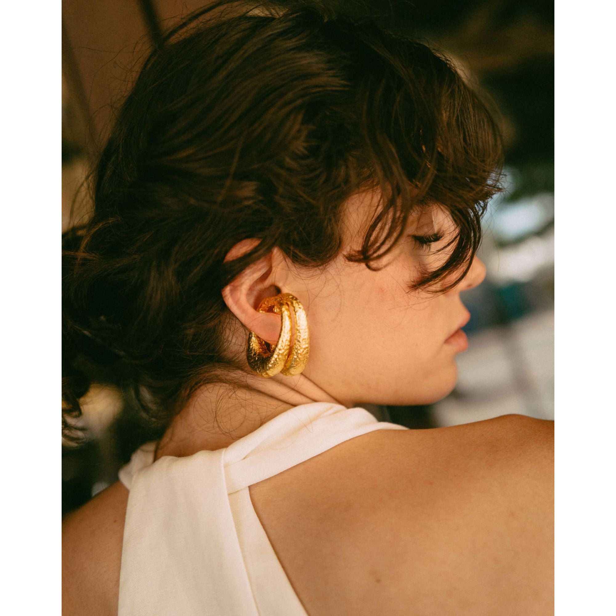 Este Ear Cuff fue hecho completamente a mano en nuestro atelier en Cali-Colombia, con materiales sustentables como latón reciclado mezclado con plata/chapado en oro de 24K.