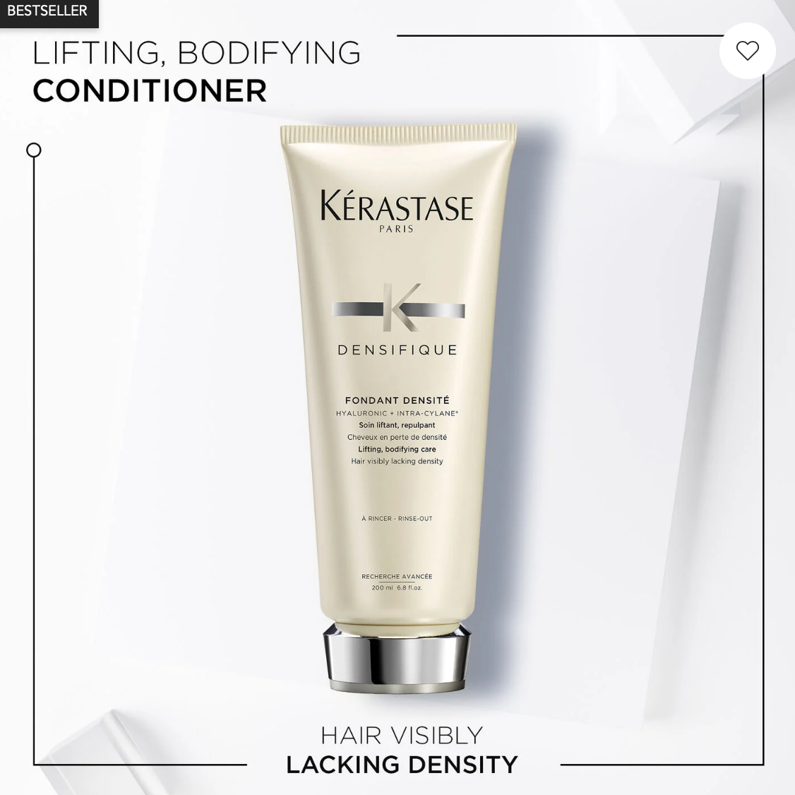 El acondicionador densificante Kerastase Densifique Fondant Densite 250ml está especialmente formulado para cabellos con pérdida de densidad. Su fórmula enriquecida con stemoxydine y ácido hialurónico desenreda suavemente mientras aporta volumen y cuerpo desde medios a puntas. Este acondicionador fortalece la fibra capilar, facilita el peinado y crea la sensación de mayor densidad. Ideal para cabellos finos o debilitados que buscan hidratación, volumen y textura sin apelmazar.