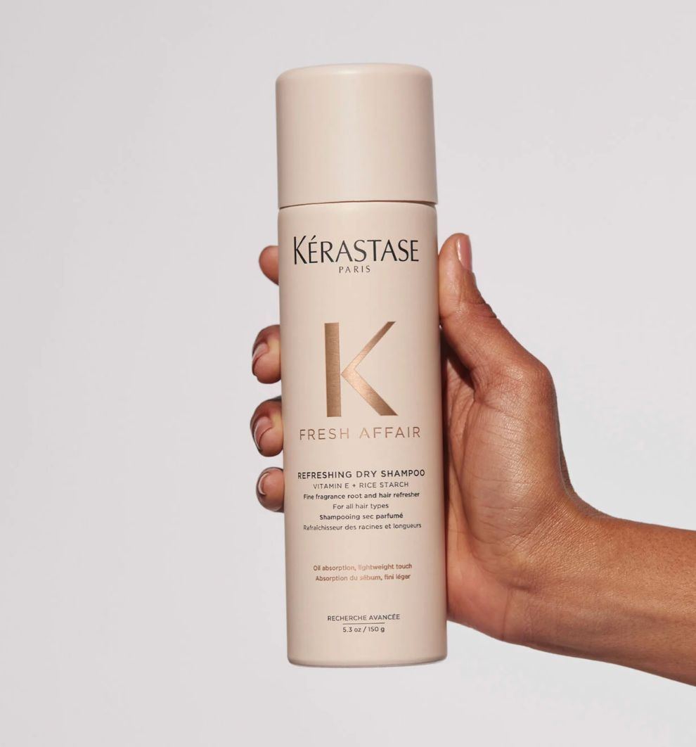 El shampoo en seco Kerastase Fresh Affair 233ml es la solución perfecta para refrescar el cabello entre lavados. Su fórmula innovadora con almidón de arroz absorbe el exceso de grasa y aporta volumen instantáneo sin dejar residuos blancos. Este spray revitalizante limpia el cuero cabelludo, elimina olores y deja una fragancia fresca y delicada. Ideal para cabello graso, dÃas de prisa o para extender el peinado, proporcionando textura, movimiento y frescura inmediata.