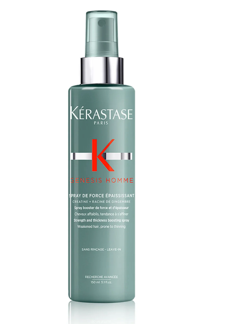 El spray fortalecedor Kerastase Genesis Homme está especialmente formulado para el cabello masculino. Este tratamiento de 150ml combate la caÃda del cabello y fortalece las fibras capilares desde la raÃz. Su fórmula innovadora estimula el crecimiento saludable del cabello mientras proporciona densidad y volumen. Fácil de aplicar y de secado rápido, es el aliado perfecto para mantener un cabello fuerte y resistente dÃa tras dÃa.