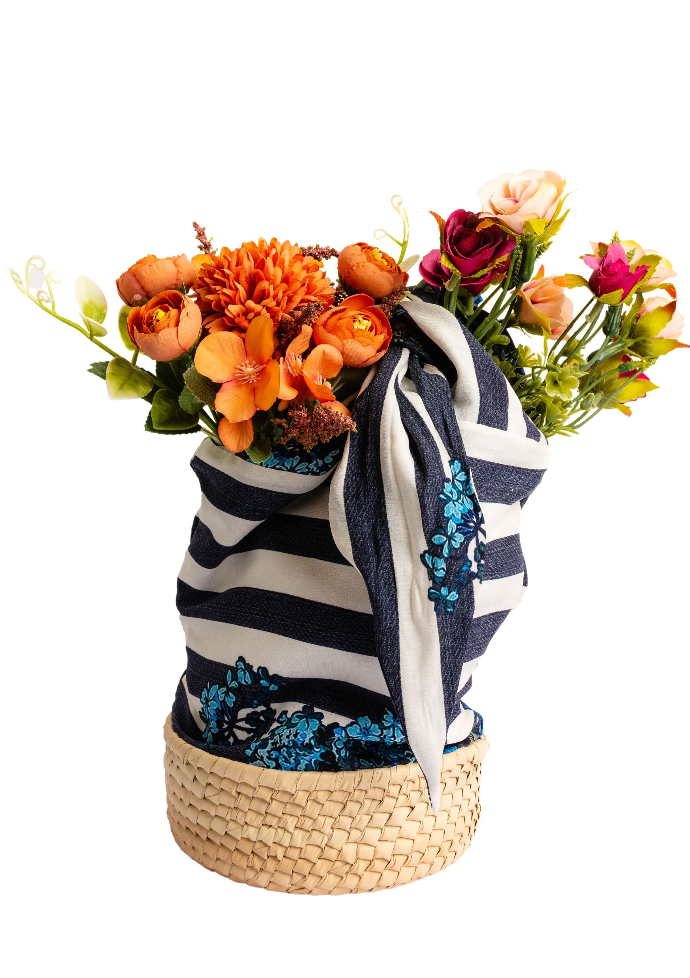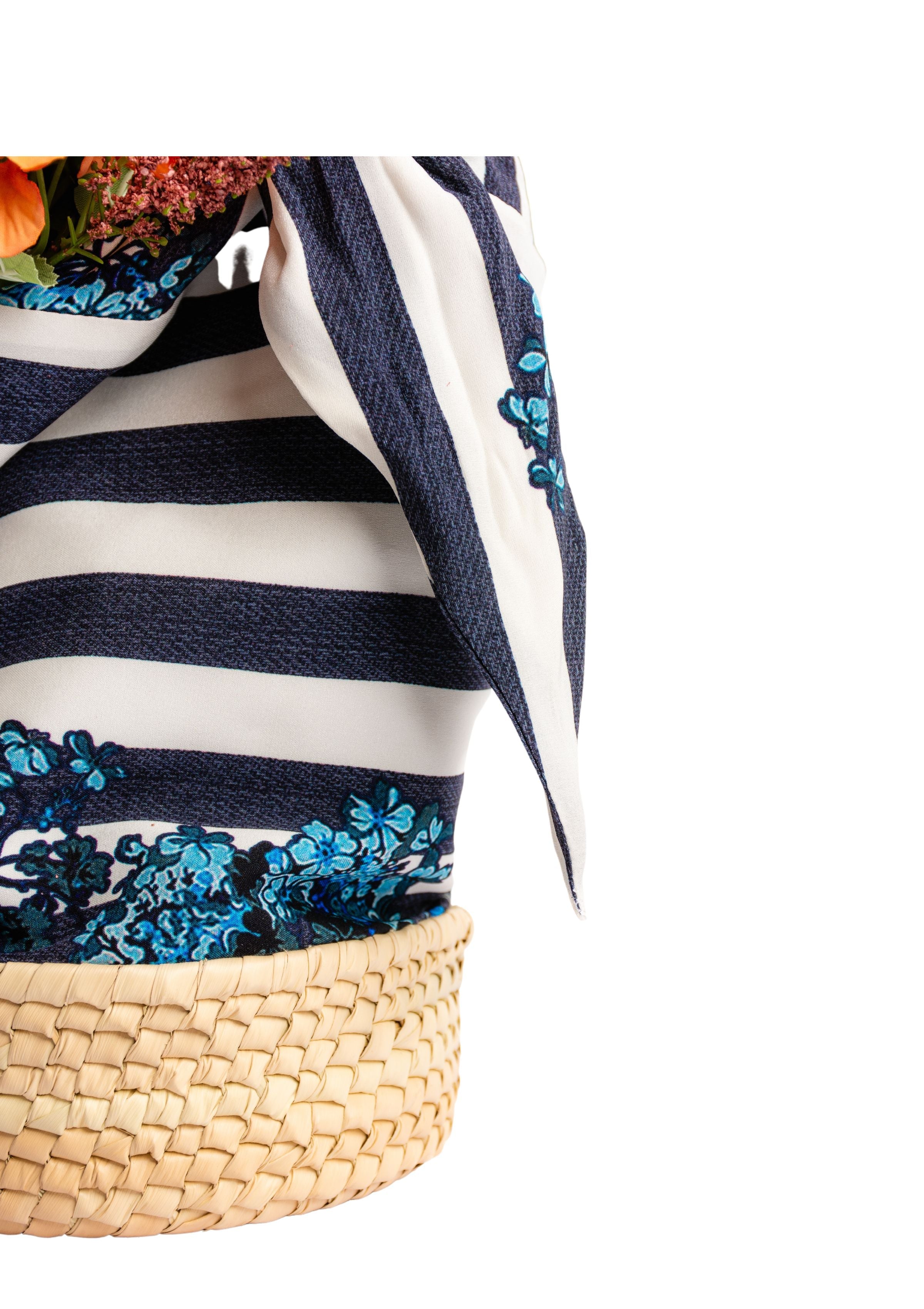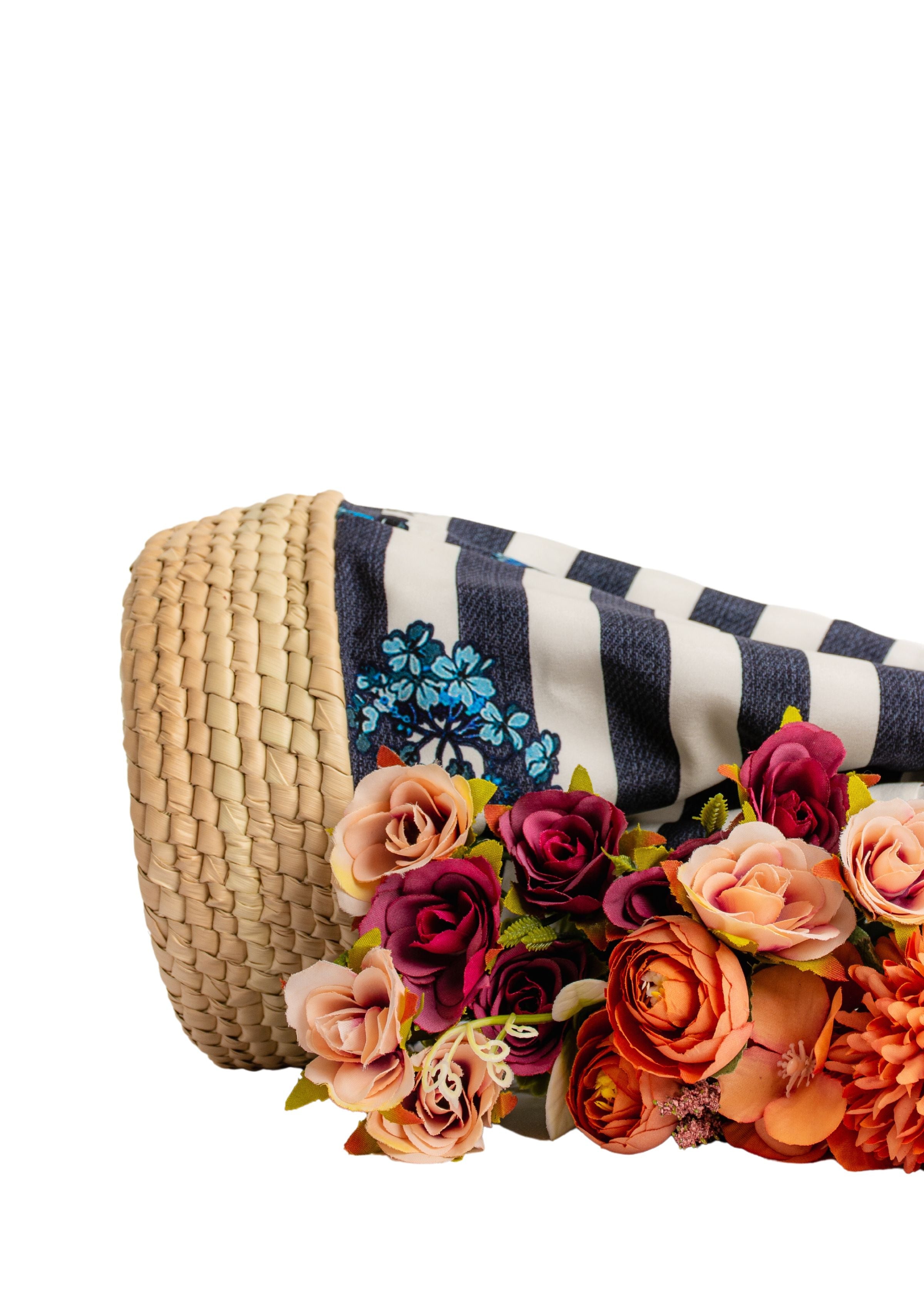 Descripción: Bolso de seda con base de palma. Funda incluida. Los colores y tamaños pueden variar.