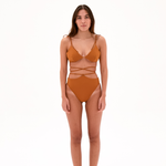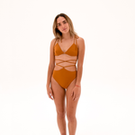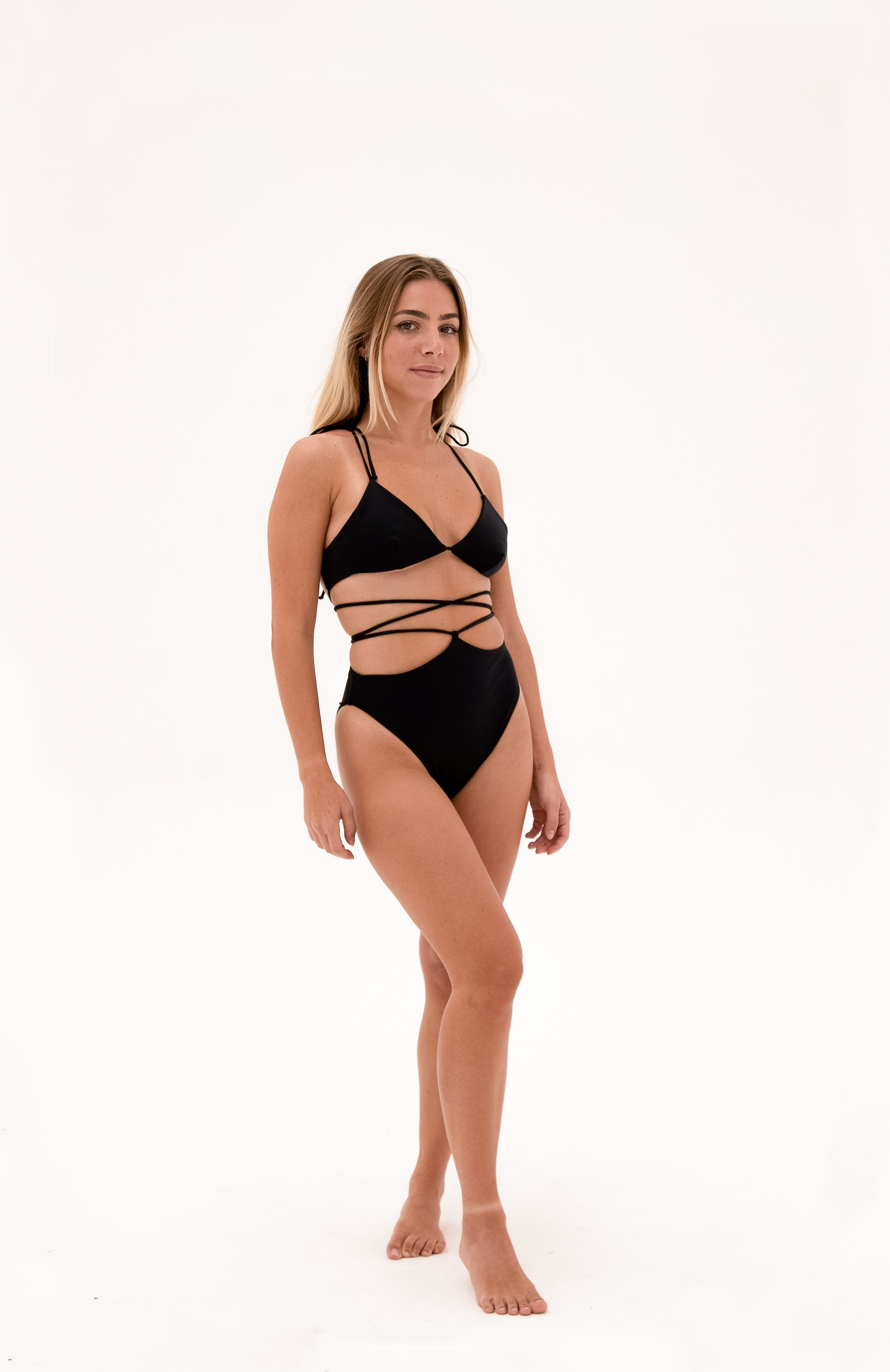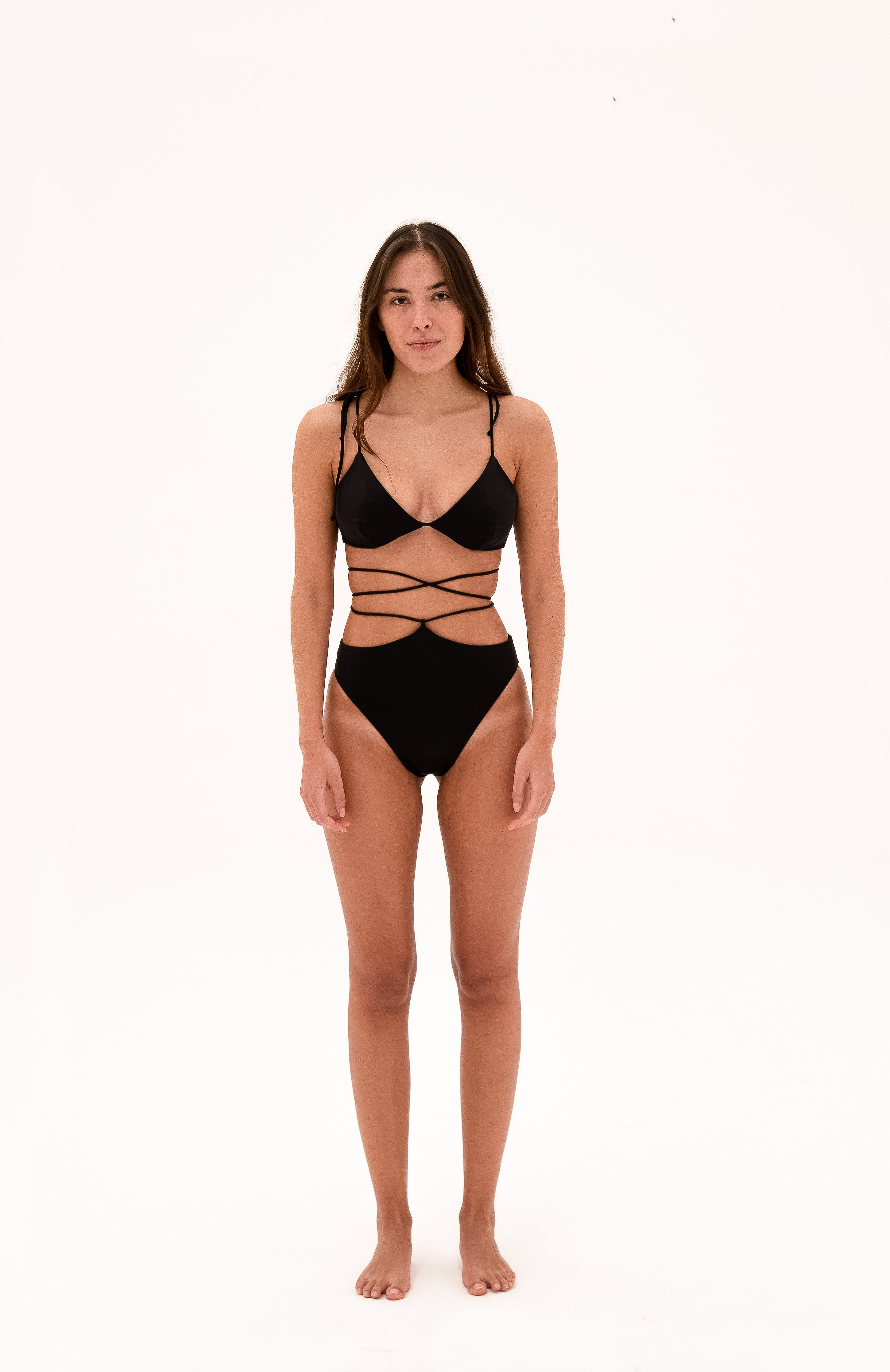 El trasero de talle alto de tus sueños cobra vida. Este pantalón es potente, cómodo y versátil. Viene con su propio lazo para envolver con o sin el Top Natalia.