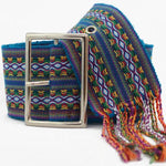 Cinturón de mujer estilo andino elaborado a partir de una “faja” tejida a mano por artesanos ecuatorianos. Es una versión contemporánea de la tradicional faja indígena hecha a mano llena de color, hebilla plateada y flecos únicos al final. Es un auténtico complemento que aporta un toque distintivo y definición al look.