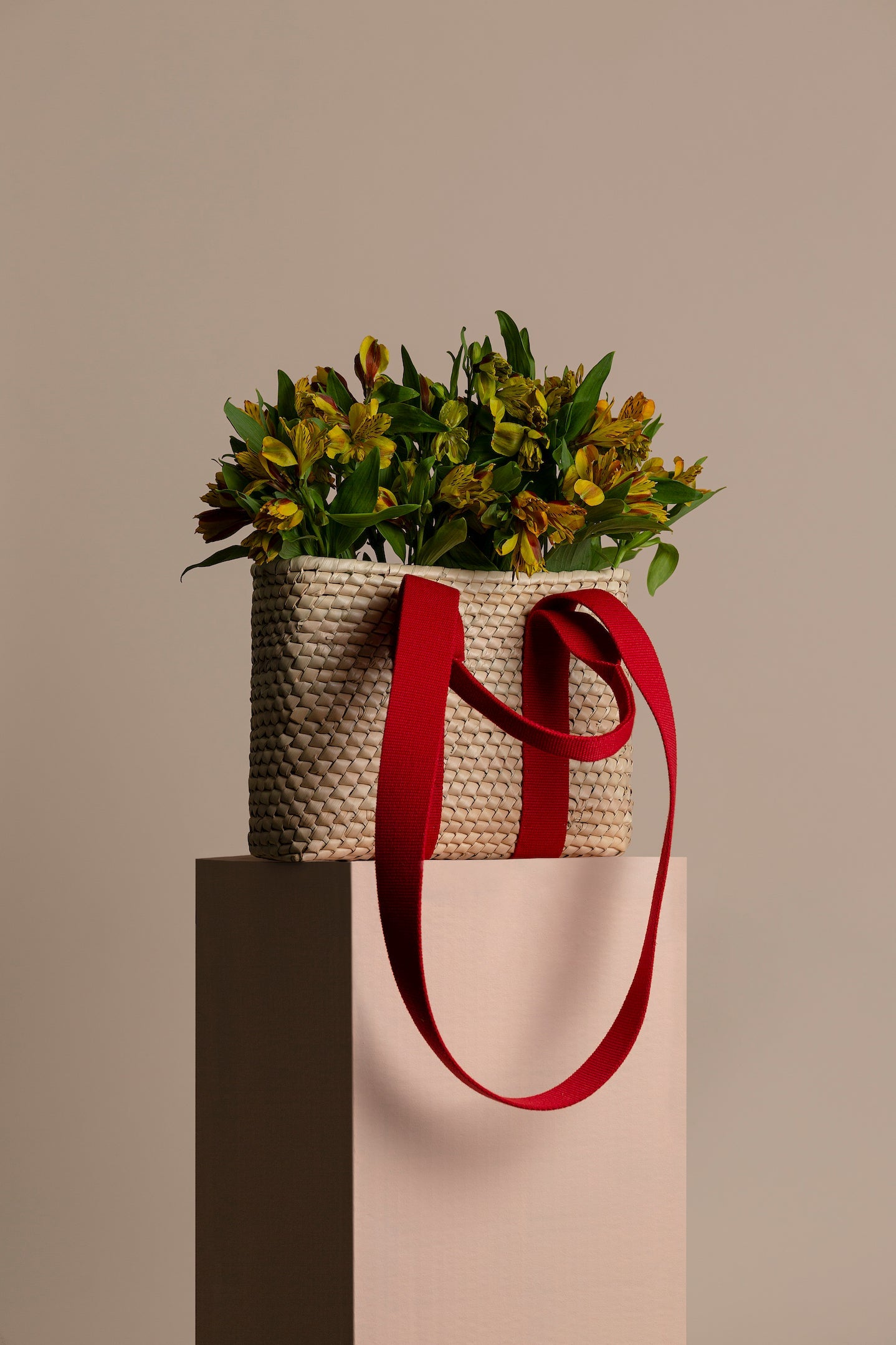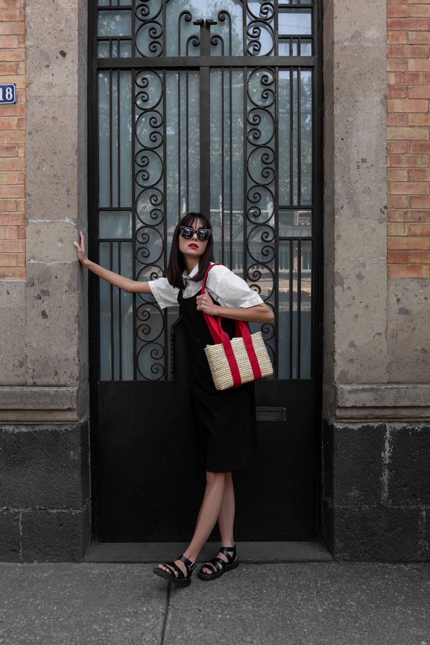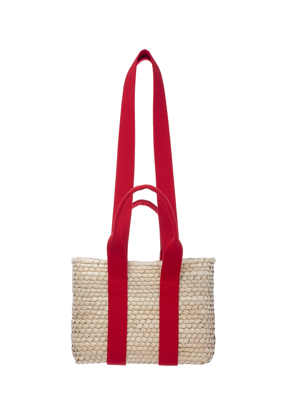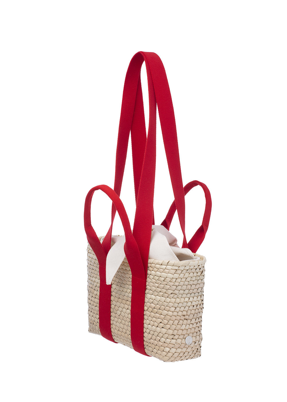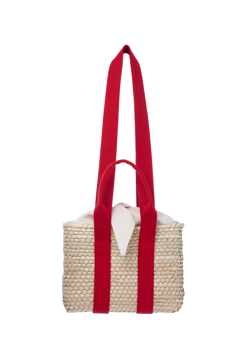 Descripción: Bolsa de palma con asas de algodón. Forro y funda incluidos. Los colores y tamaños pueden variar.