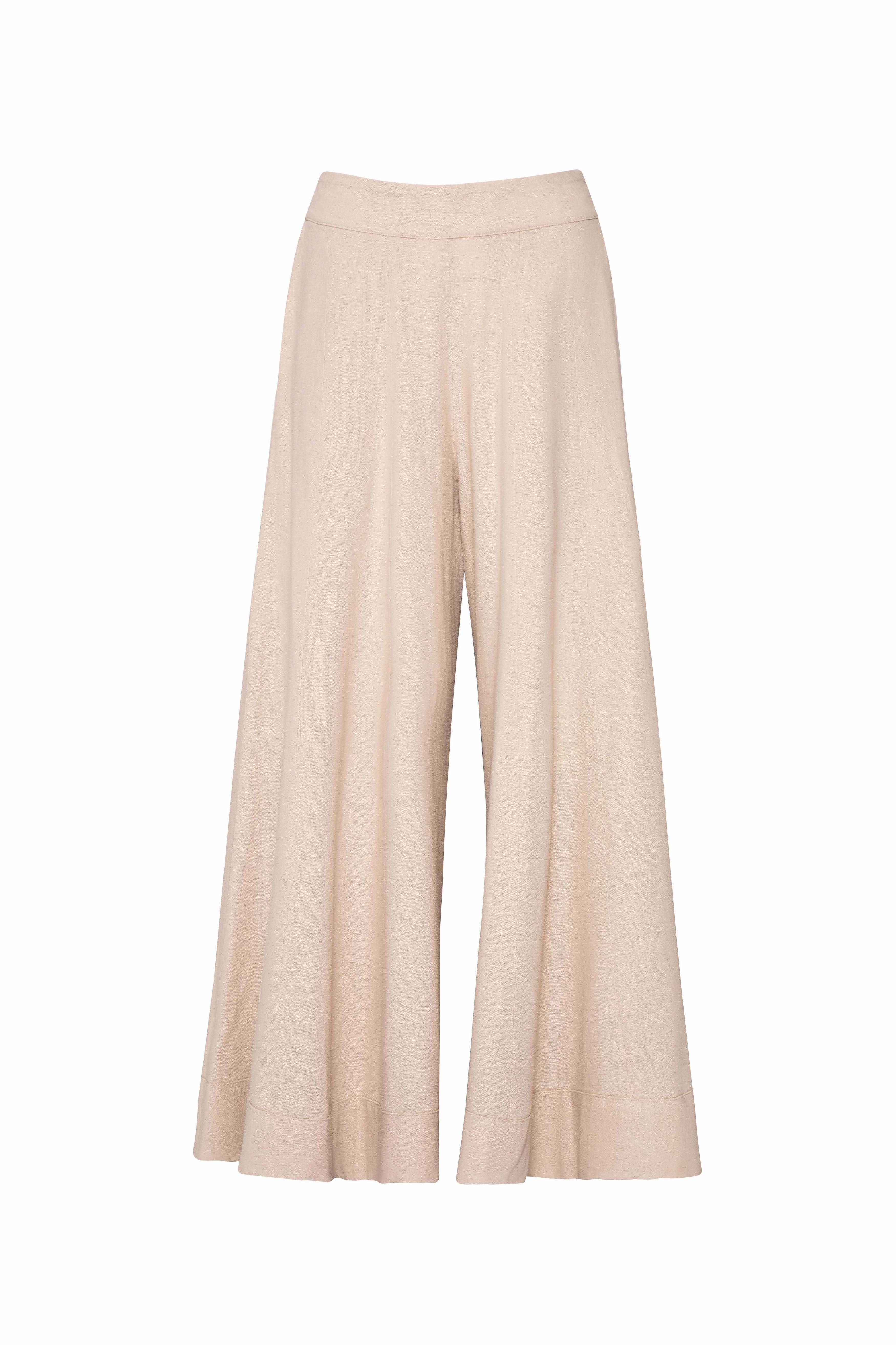 Pantalón color arena ancho y fluido. Bolsillos laterales. Pretina delantera anatómica y elástico en cintura trasero. Pieza con pre-lavado y suavizado.
