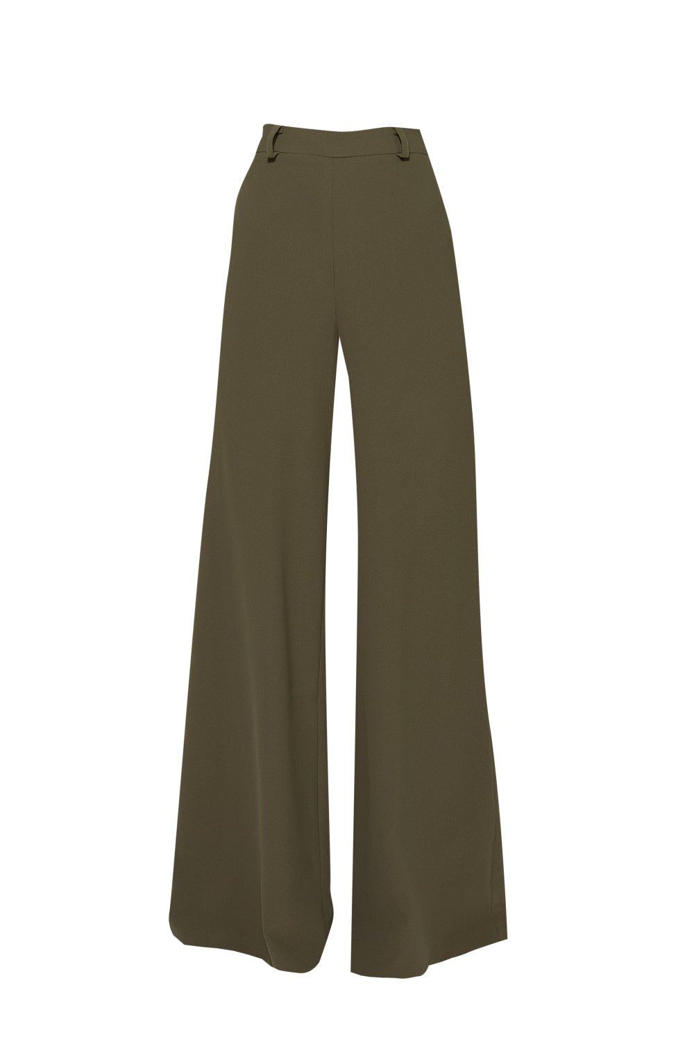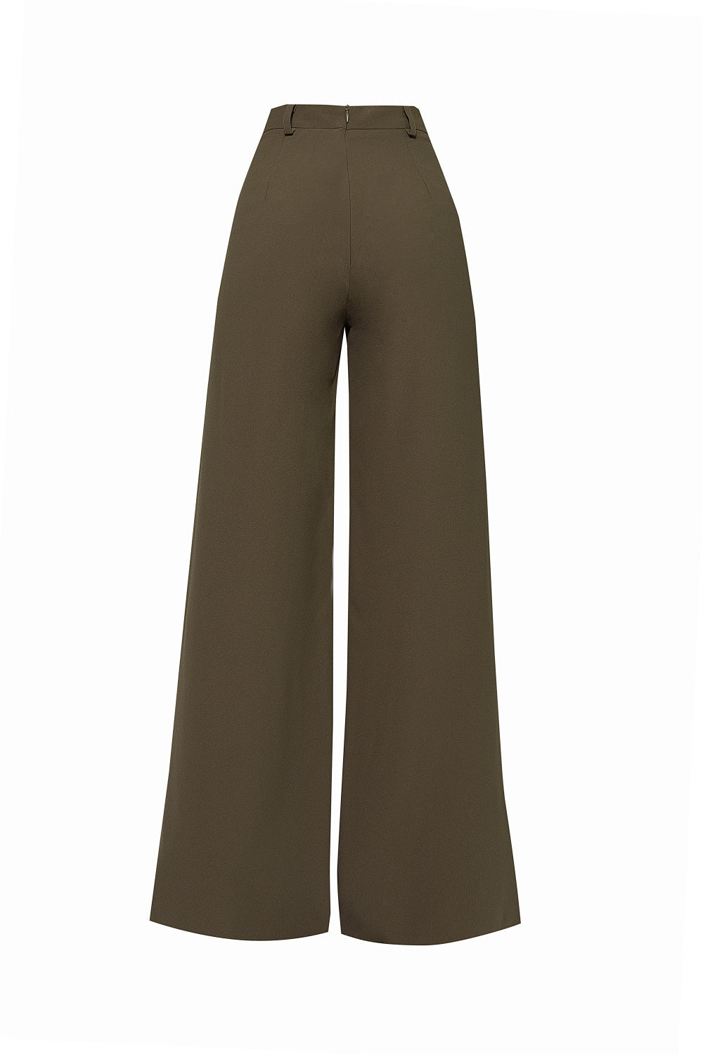 Altos pantalones de tiro con cintura con cintura, silueta tipo palazzo y cierre invisible posterior. Longitud de los pantalones: 1.15.