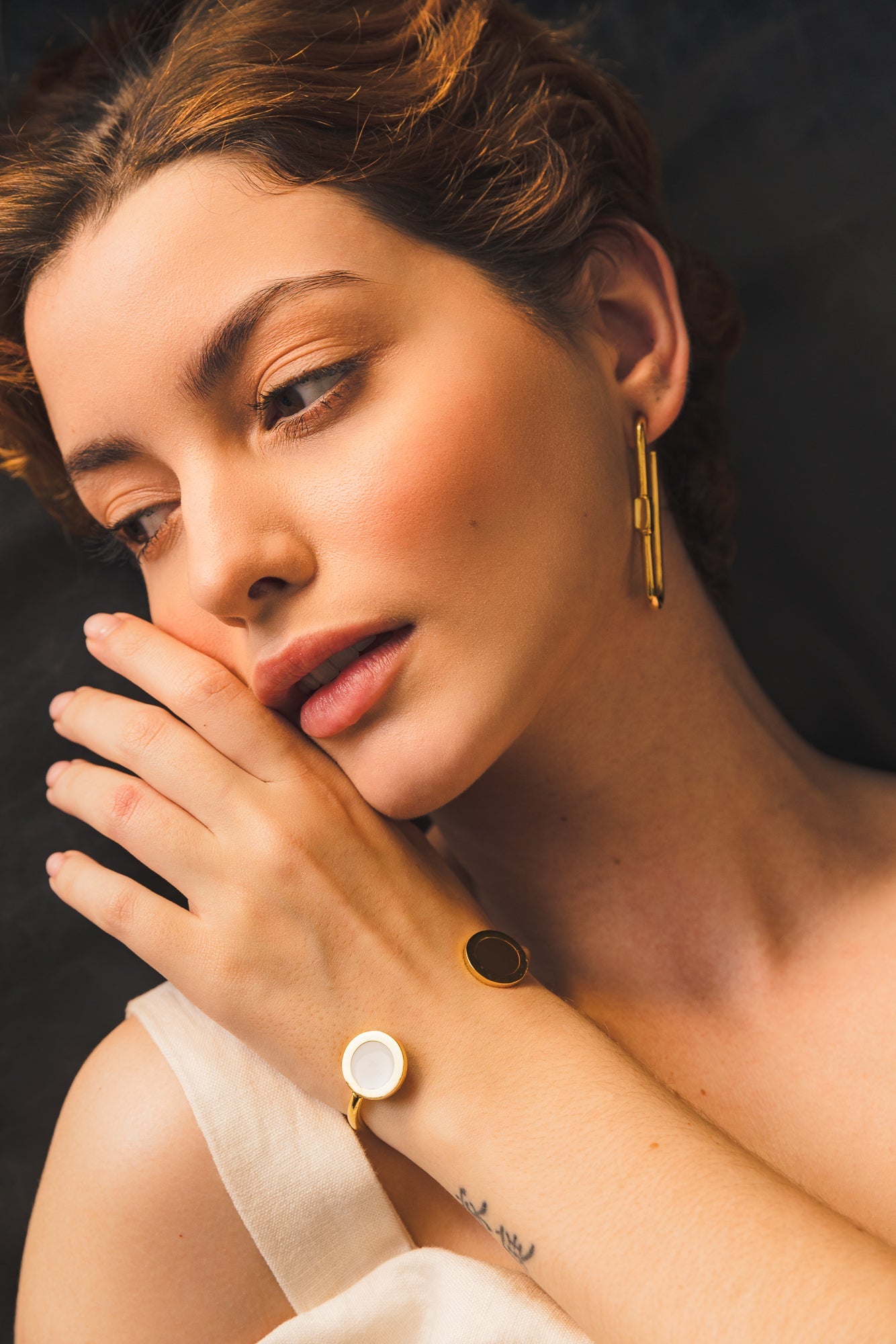 Esta pieza es un clásico atemporal que se ve perfecta en solitario o incluso mezclando varias pulseras del mismo diseño con los diferentes tonos.