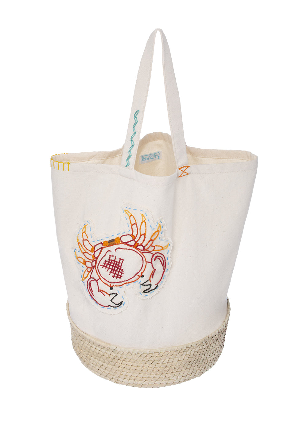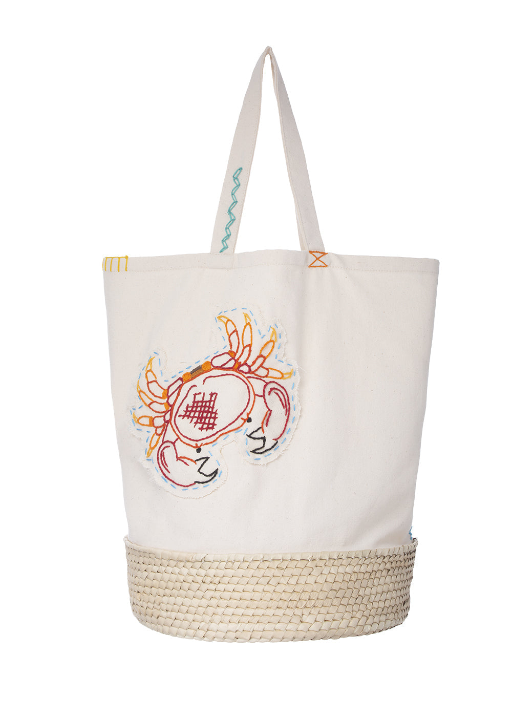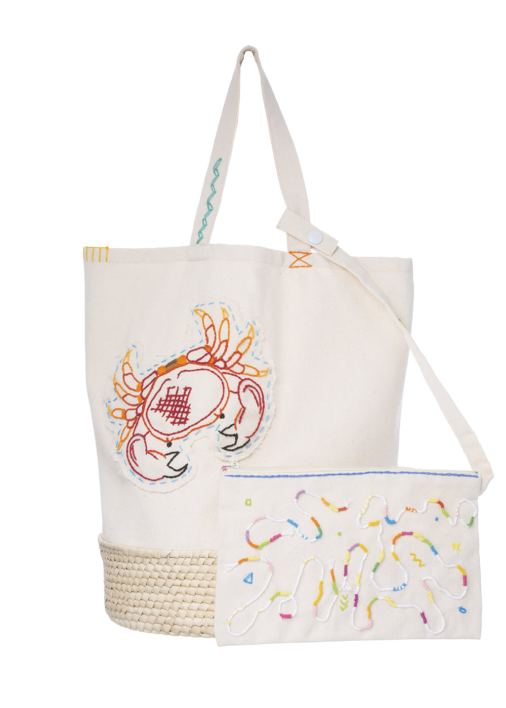 Descripción: Bolsa de lona con base en palma y diseño personalizado. Incluye funda y funda bordada. Los colores y tamaños pueden variar.