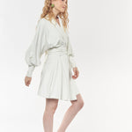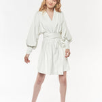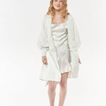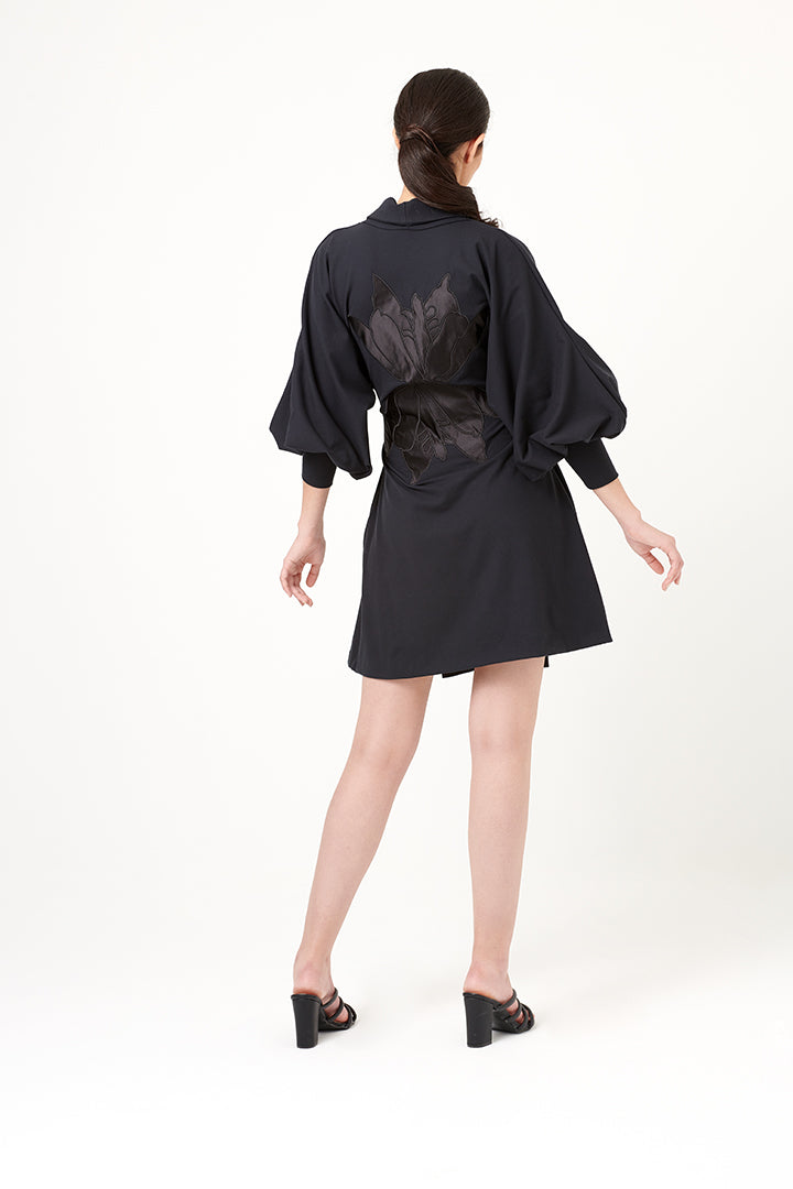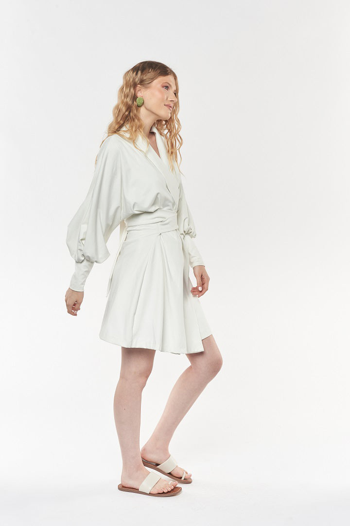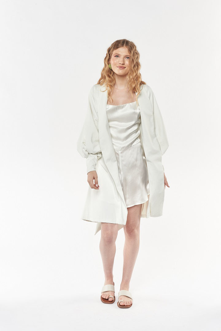 100% reciclado lycra. Este vestido versátil se puede usar solo cerrado o abierto emparejado con uno de nuestros mamelucos o monos.