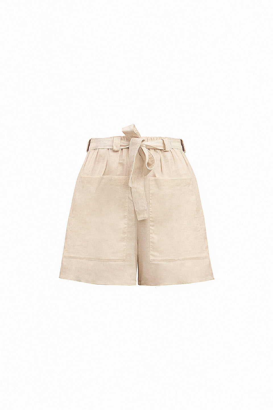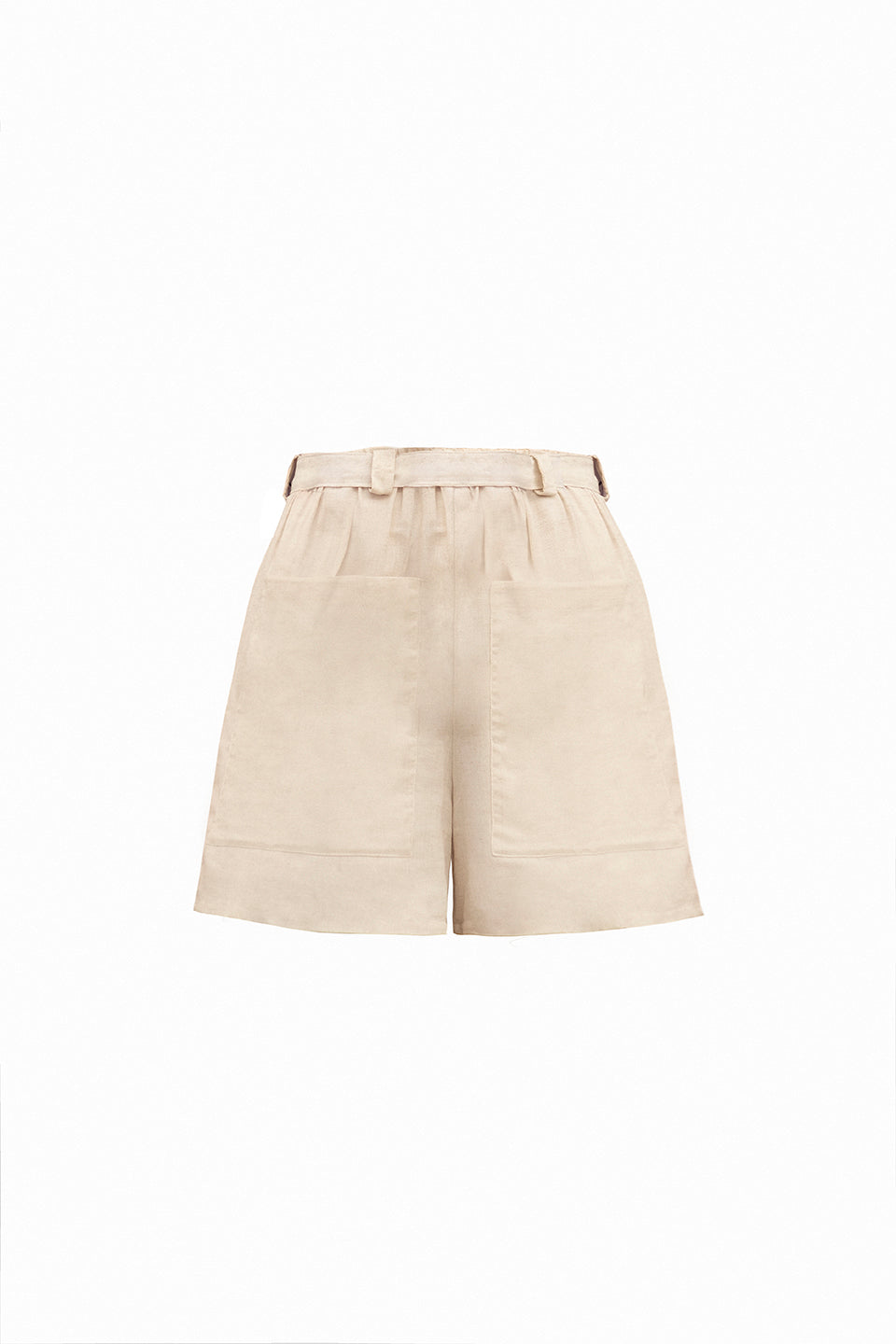 Corto con pasta elástica y cinturón, bolsas grandes en la parte delantera y trasera. Base: Lino. Tiempo de entrega: 8 días hábiles.