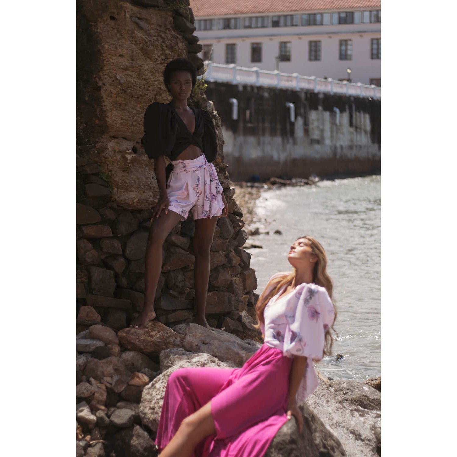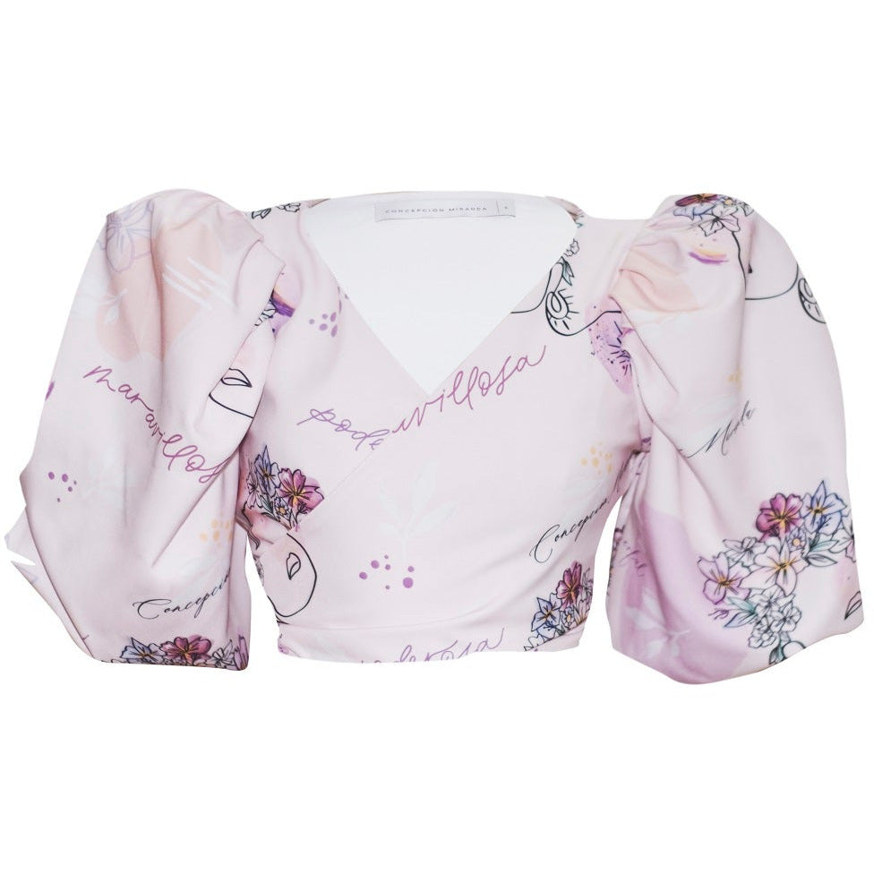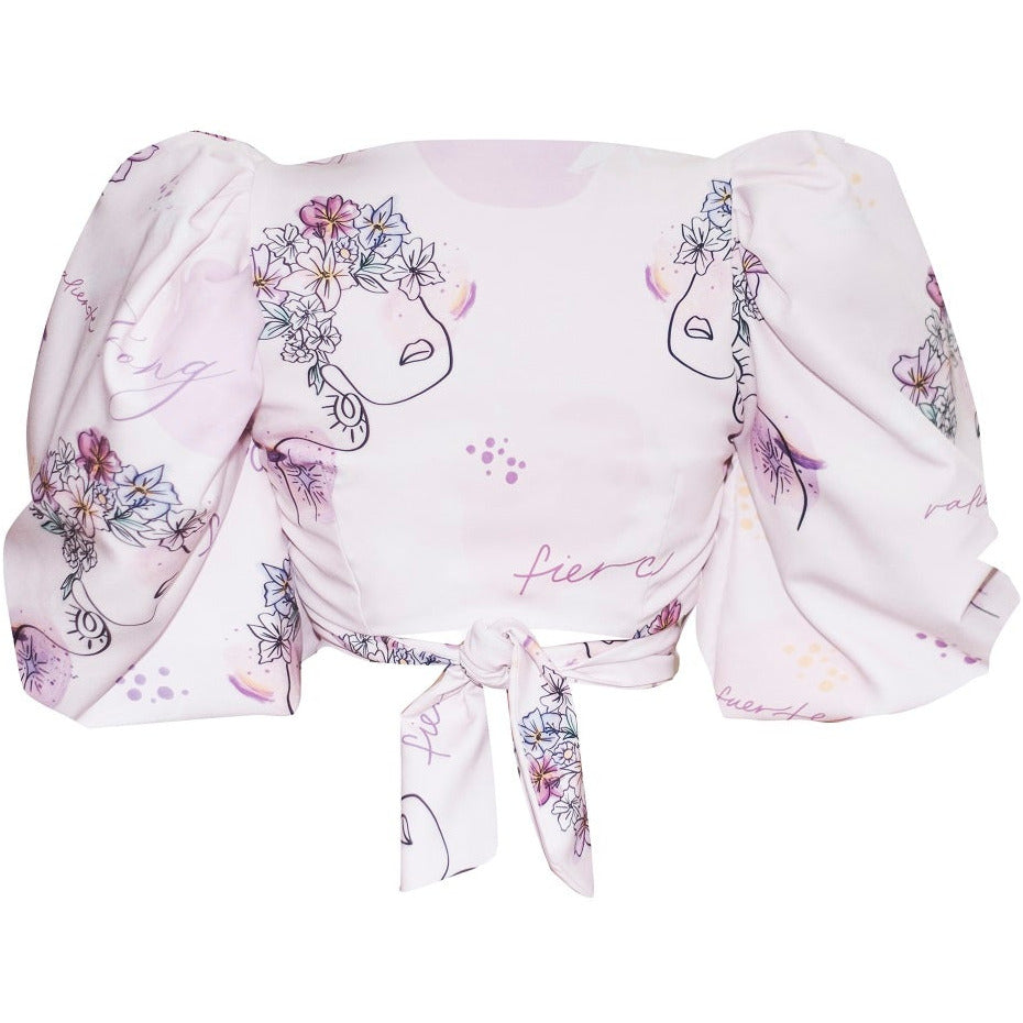Crop Top, Maxi Mangas Globo, se puede usar en el frente con largas tiras para atar tres maneras diferentes, dando variedad de su uso.
