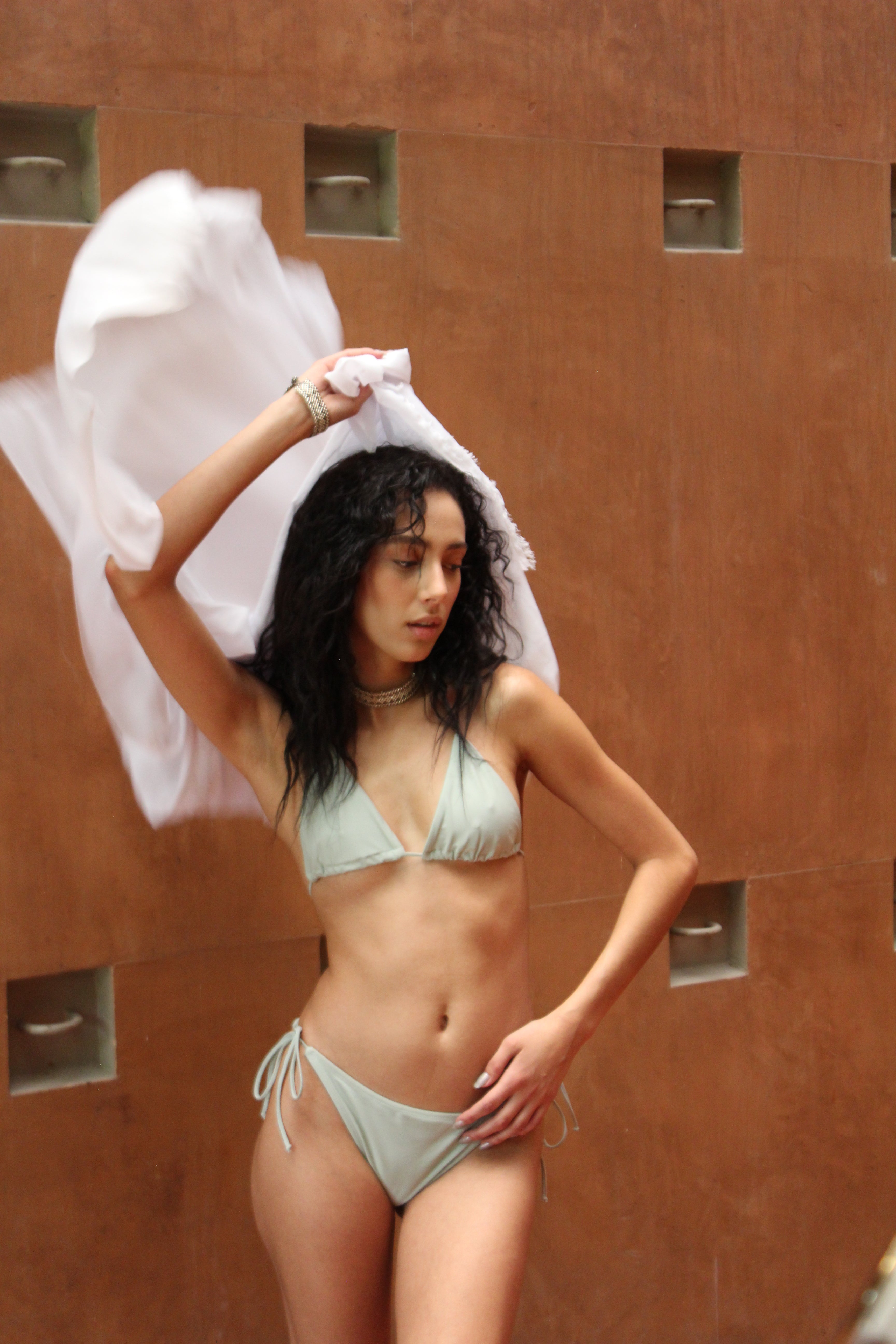 El top X es un clásico de Marea Blanca que actualizamos colección tras colección con los distintos colores y tejidos. Esta versión tiene unos amarres muy finos y una paleta de color muy especial y elegante.