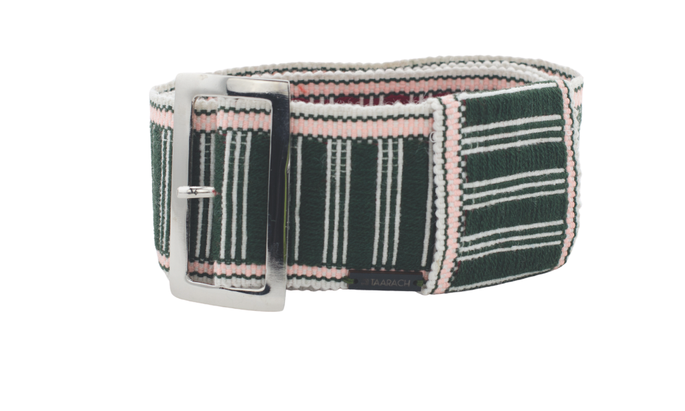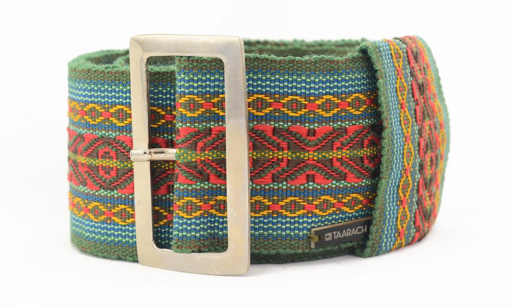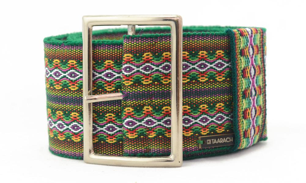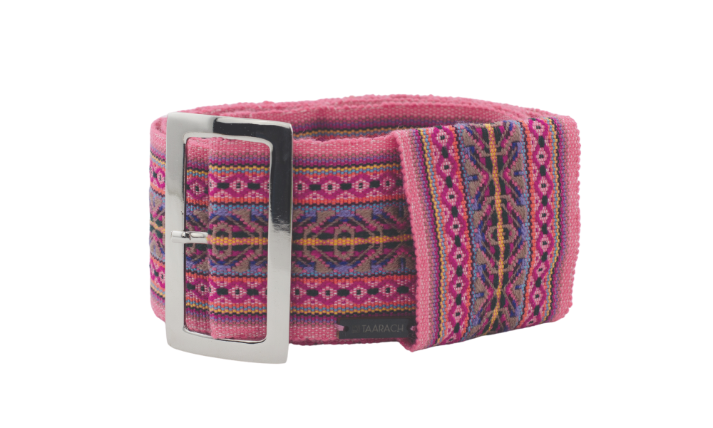 Cinturón de mujer estilo andino, elaborado a partir de una faja tejida a mano por artesanos ecuatorianos. Es una versión contemporánea de la faja indígena atemporal llena de color y hebilla plateada. Es un cinturón único que aporta un toque distintivo y definición al look.