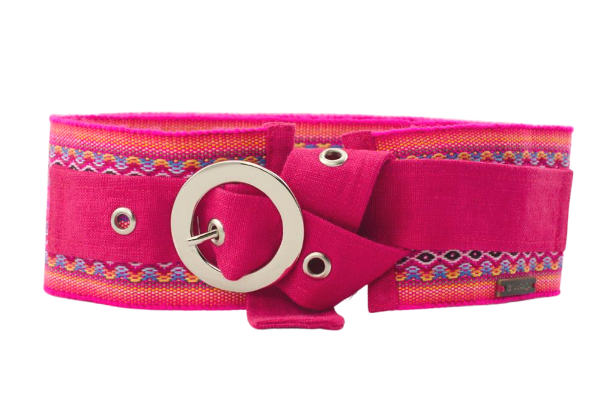 Cinturón de diseño estilo andino elaborado con “faja” tejida a mano por artesanos ecuatorianos y lino. Tiene una combinación única de elementos tradicionales y étnicos con un diseño contemporáneo. Es un cinturón de moda para cualquier look moderno, que transformará y completará el outfit.