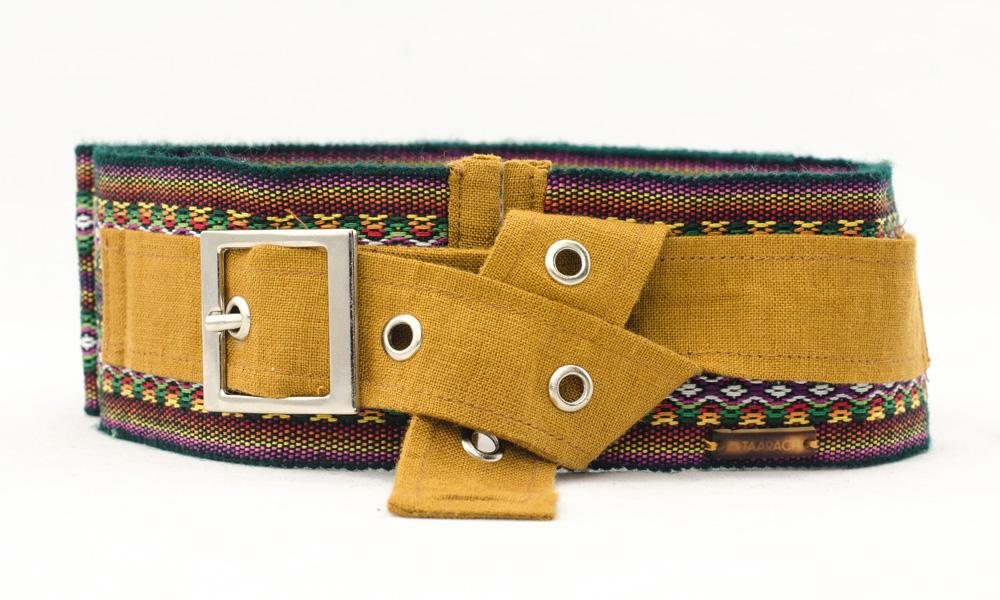 Cinturón de diseño estilo andino elaborado con “faja” tejida a mano por artesanos ecuatorianos y lino. Tiene una combinación única de elementos tradicionales y étnicos con un diseño contemporáneo. Es un cinturón de moda para cualquier look moderno, que transformará y completará el outfit.