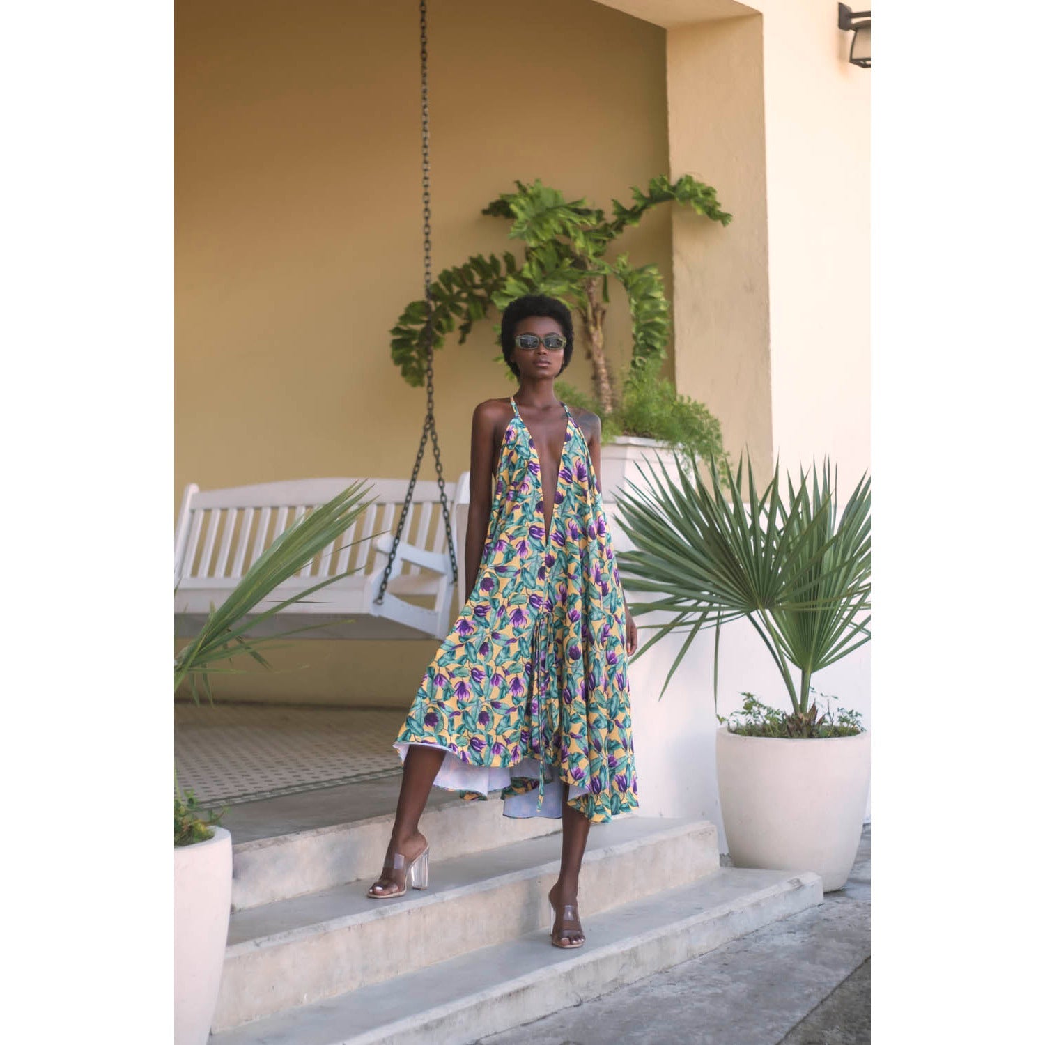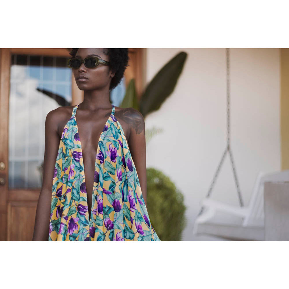 silueta a ancho, de aparatos ortopédicos ajustables. Impresión exclusiva de la marca inspirada en transmitir alegría tropical, libertad, felicidad a través de sus colores.