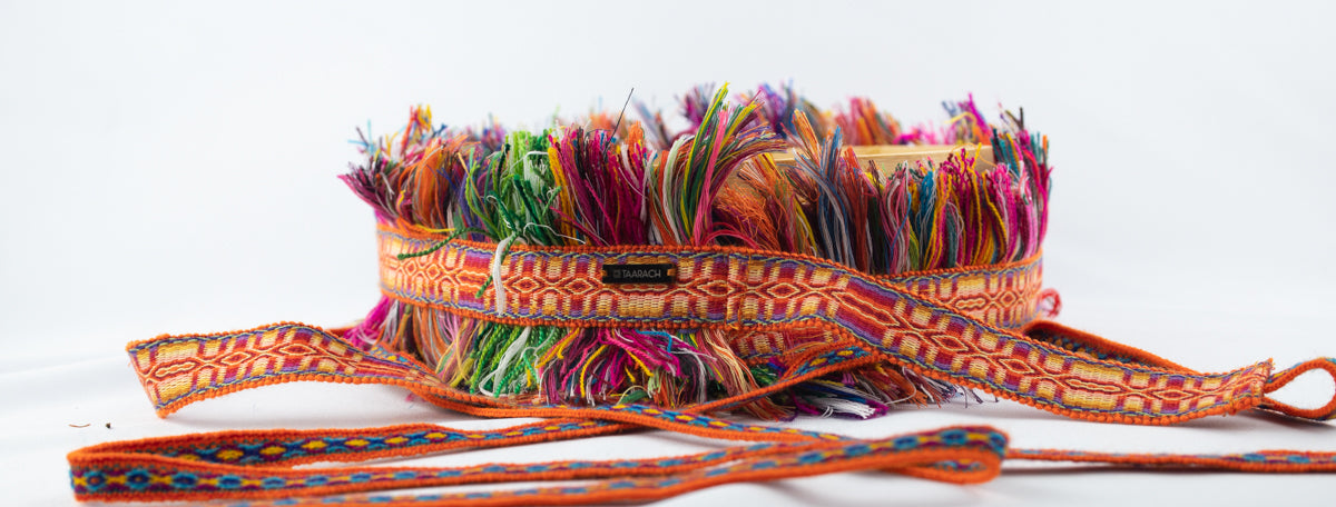 Wasursa, que significa gracioso en lengua Shuar. Un cinturón versátil transformará cualquier look en una pieza de moda exclusiva y fantástica.