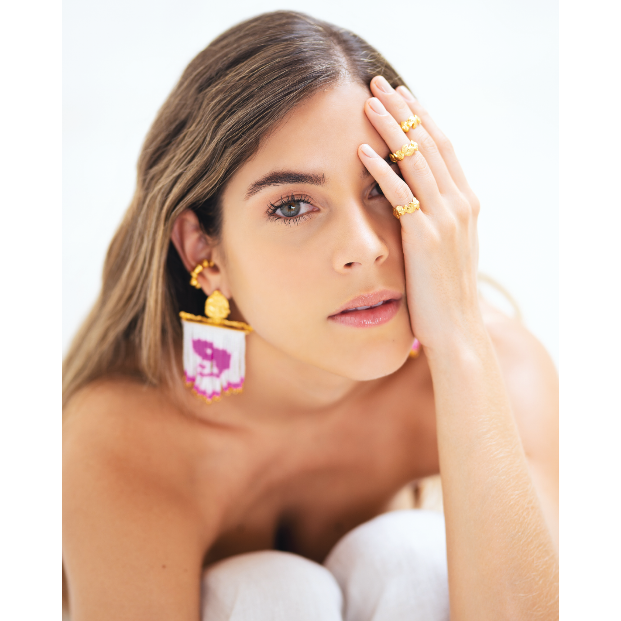 Completamente hecho a mano en nuestro atelier en Cali-Colombia, con materiales sustentables como Accesorios de lujo elaborados en Bronce chapado en oro de 24 quilates + la mejor calidad de cuentas checas.
