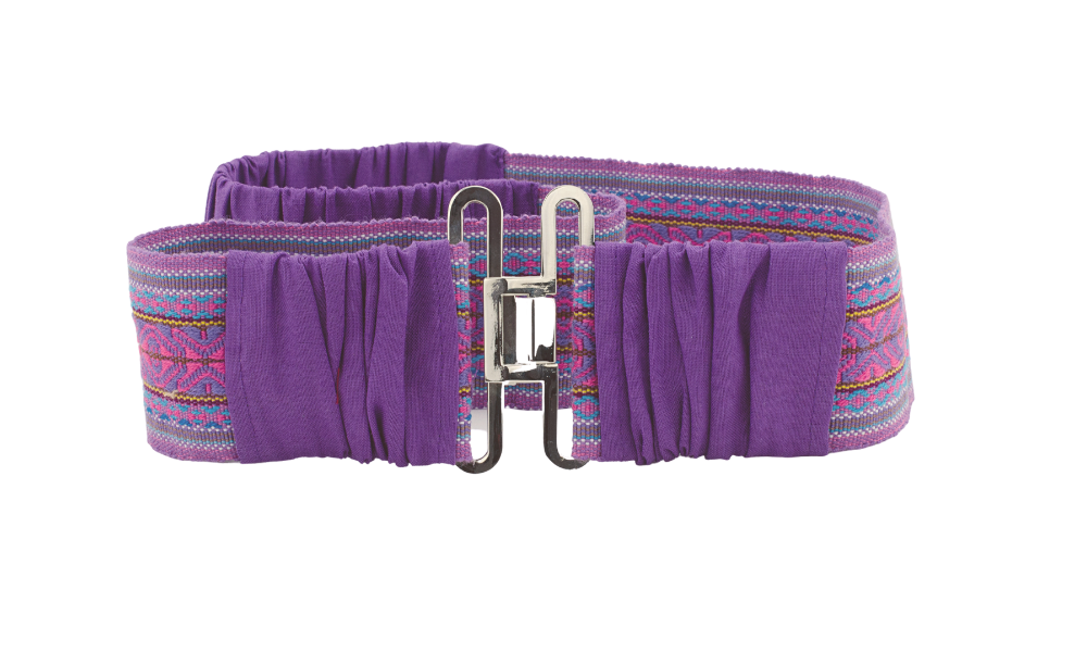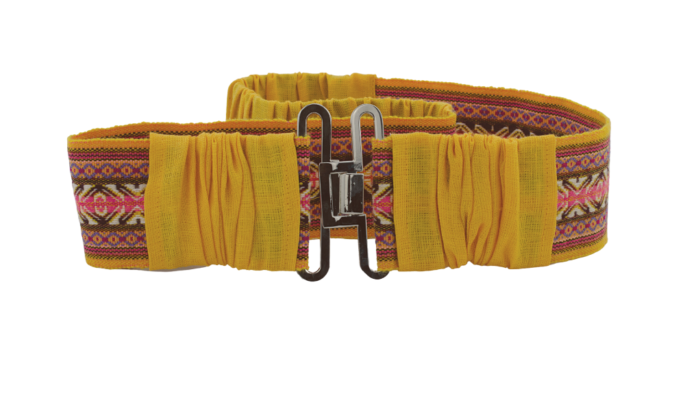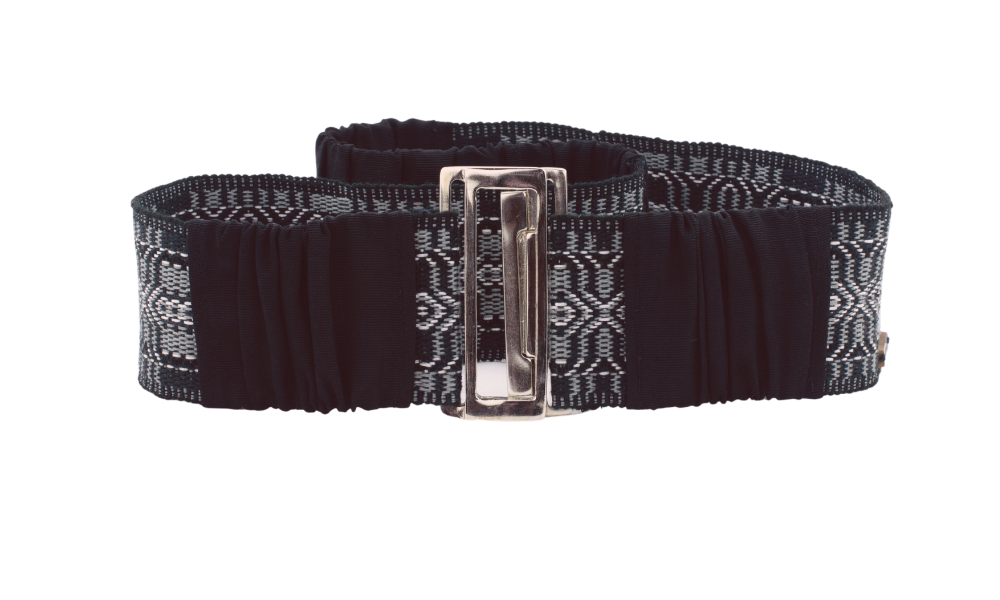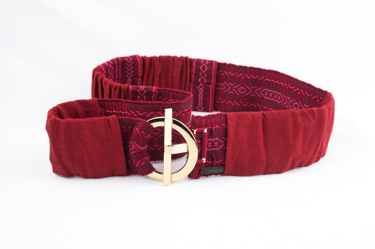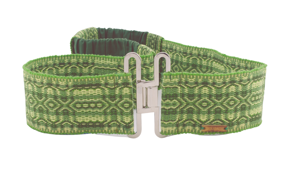 Cinturón de diseño único inspirado en la vestimenta y la geometría andina. Es un accesorio sustentable elaborado con faja tejida a mano por artesanos ecuatorianos y lino. Este cinturón único combina lo étnico y lo contemporáneo de una manera moderna que aporta un toque de estilo y transforma un look cotidiano en algo especial.